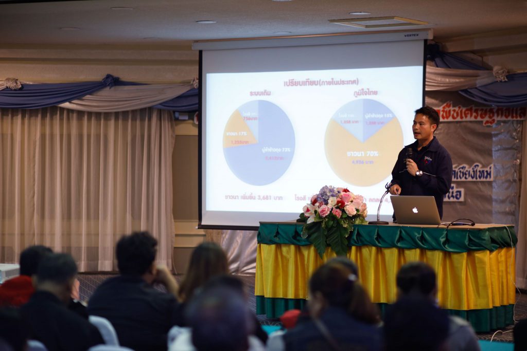 ชาวนาไทยเมื่อเข้าสู่ระบบจัดสรรปันส่วนกำไร ในรูปแบบผู้เล่นหลัก 3คน ประกอบด้วย เกษตรกร -โรงสี-ผู้ส่งออก โดยผลกำไรจะถูกแบ่งให้แก่เกษตรกร 70 %โรงสี 15%ผู้ส่งออก15 % ข้อดีของระบบนี้ คือเกษตรกรลงทุนมาก เมื่อข้าวราคาดีผลกำไร ก็จะถูกส่งกลับมามากเช่นกัน นี้คือข้อดีของระบบแบ่งปันกำไร จากเดิมที่ชาวนาได้กำไรน้อยที่สุด ขณะที่ผู้ส่งออกได้กำไรมากที่สุด