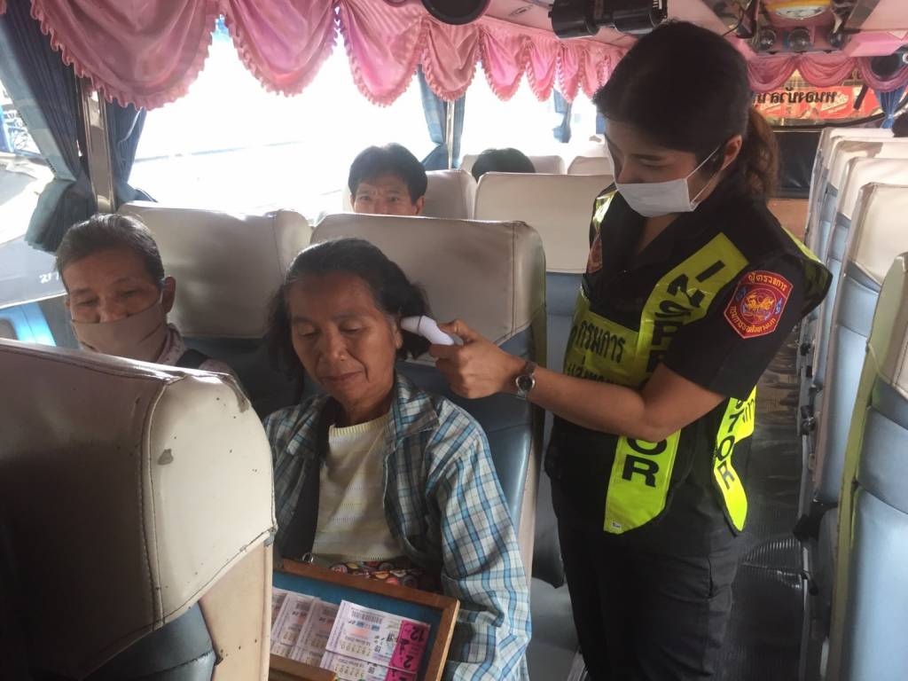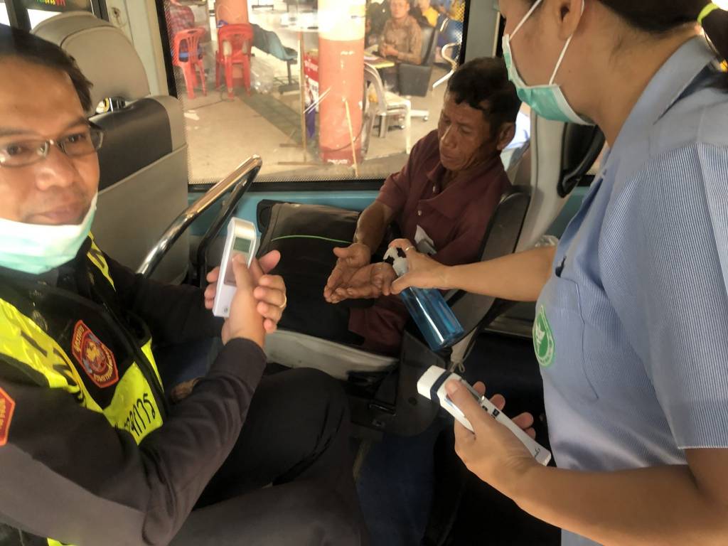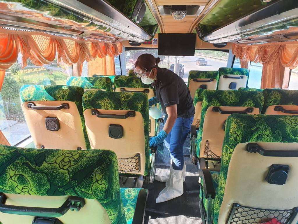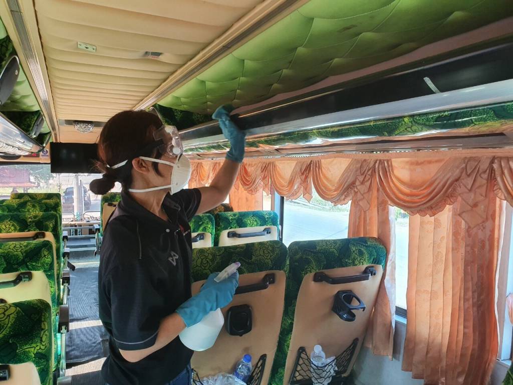 ส่วนข้อแนะนำสำหรับผู้ประกอบการขนส่ง เพิ่มความถี่ในการทำความสะอาดด้วยน้ำยาฆ่าเชื้อโรคในรถ และภายในสถานีขนส่ง เช่น ราวจับ ที่จับบริเวณประตูรถ ที่นั่ง ราวจับบันได/บันไดเลื่อน ปุ่มกดลิฟต์ และห้องน้ำ เป็นต้น ติดตั้งจุดบริการแอลกอฮอล์เจล เพื่อให้บริการแก่ผู้โดยสารรวมถึงพนักงานในพื้นที่ส่วนกลางและบริเวณที่มีการใช้งานร่วมกัน เช่น บริเวณทางเข้า-ออกสถานี ห้องจำหน่ายตั๋วโดยสาร กำชับให้เจ้าหน้าที่สวมหน้ากากอนามัยตลอดเวลาขณะปฏิบัติงาน และให้มีการตรวจสอบสภาพร่างกายเจ้าหน้าที่ เจ้าหน้าที่รักษาความปลอดภัย โดยมีการตรวจวัดอุณหภูมิเพื่อคัดกรองรายวันก่อนปฏิบัติงานทุกวัน หากมีเจ้าหน้าที่ที่มีอาการป่วย หรือมีไข้สูง ให้พบแพทย์เพื่อตรวจรักษาทันที จัดให้มีจุดคัดกรองผู้โดยสารด้วยการตรวจวัดอุณหภูมิร่างกายก่อนเข้าใช้บริการ หากพบผู้ที่มีอุณหภูมิสูงกว่า 37.5 องศาเซลเซียส หรือมีอาการไอ เจ็บคอ หอบ เหนื่อย จะต้องให้ข้อแนะนำในการปฏิบัติตนเพื่อป้องกันการแพร่ระบาดของเชื้อ และให้สวมหน้ากากอนามัยตลอดเวลา และติดต่อกรมควบคุมโรคเพื่อดำเนินการในส่วนที่เกี่ยวข้องต่อไป ให้มีการประชาสัมพันธ์ สร้างความรู้ความเข้าใจ และรณรงค์แนะนำการปฏิบัติเพื่อหลีกเลี่ยงการแพร่ระบาดของโรคไวรัสโคโรนา 2019 (COVID-19) แก่ผู้โดยสารและผู้ประกอบการขนส่งผ่านสื่อประชาสัมพันธ์รูปแบบต่างๆ เช่น ป้ายประชาสัมพันธ์ แผ่นพับ จอ LED เสียงประชาสัมพันธ์ภายในสถานีขนส่งและสื่อโซเชียลมีเดีย เป็นต้น