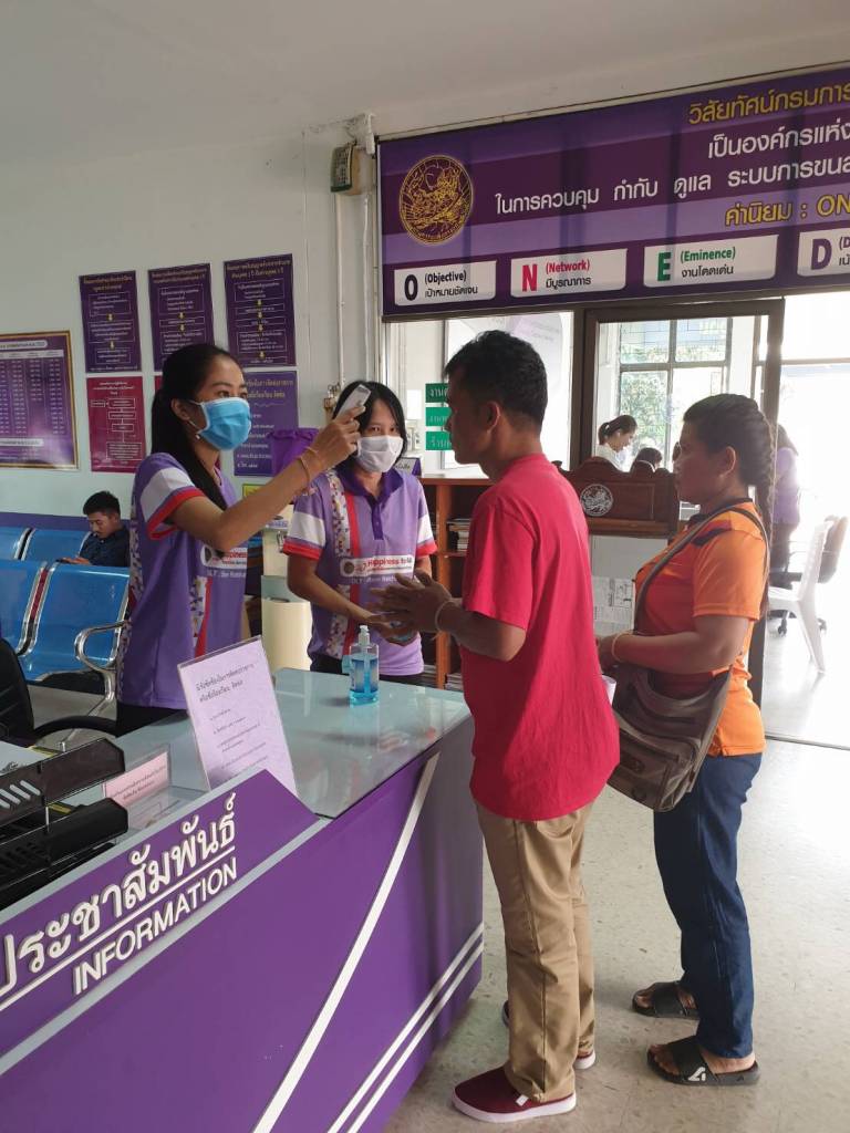 ในส่วนของ สำนักงานขนส่งศรีสะเกษ, มุกดาหาร, ประจวบคีรีขันธ์, นครราชสีมา, หนองคาย, อุบลราชธานี, ขอนแก่น, เลย ดำเนินการตรวจวัดอุณหภูมิร่างกายประชาชนผู้มาติดต่อใช้บริการ ที่สำนักงานขนส่ง และประชาชนผู้โดยสารพนักงานขับรถโดยสาร ณ สถานีขนส่งผู้โดยสาร/จุดจอดรถ/จุด Checking Point/ท่ารถต่างๆ เชื้อไวรัส COVID-19 และจัดให้มีเจลแอลกอฮอล์ล้างมือบริการประชาชน