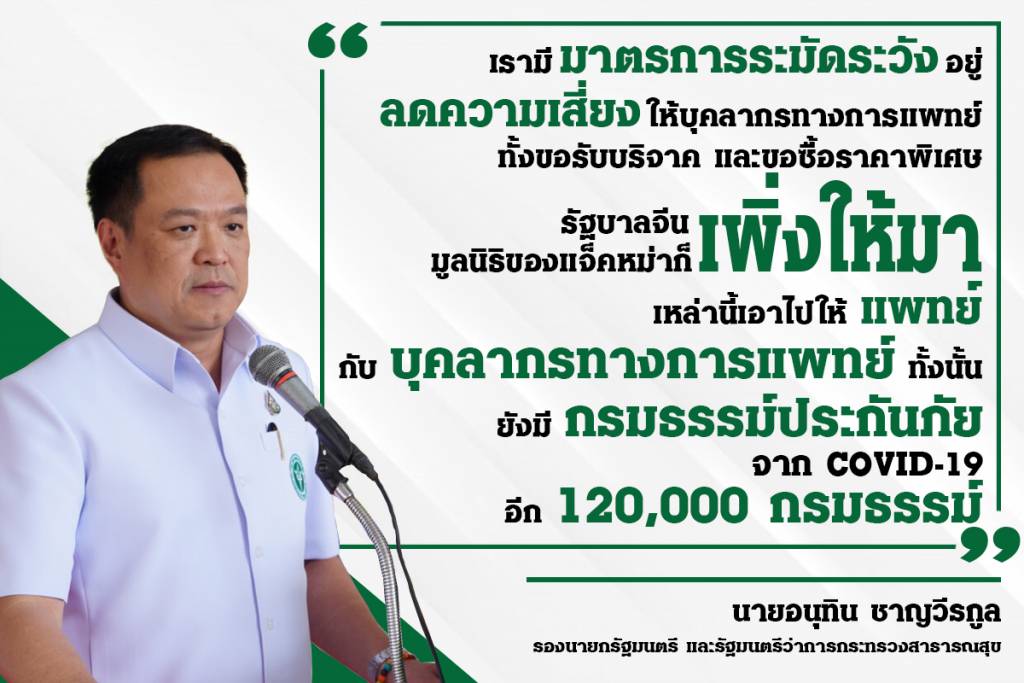 "รองนายกฯอนุทิน" แจง ไม่ได้ตำหนิแพทย์ พร้อมเตรียมมาตรการความเสี่ยงโรคไวรัสโควิด-19 อาทิ กรมธรรม์ ชุด PPE หน้ากาก N95 พร้อมส่งรพ.ทั่วประเทศ