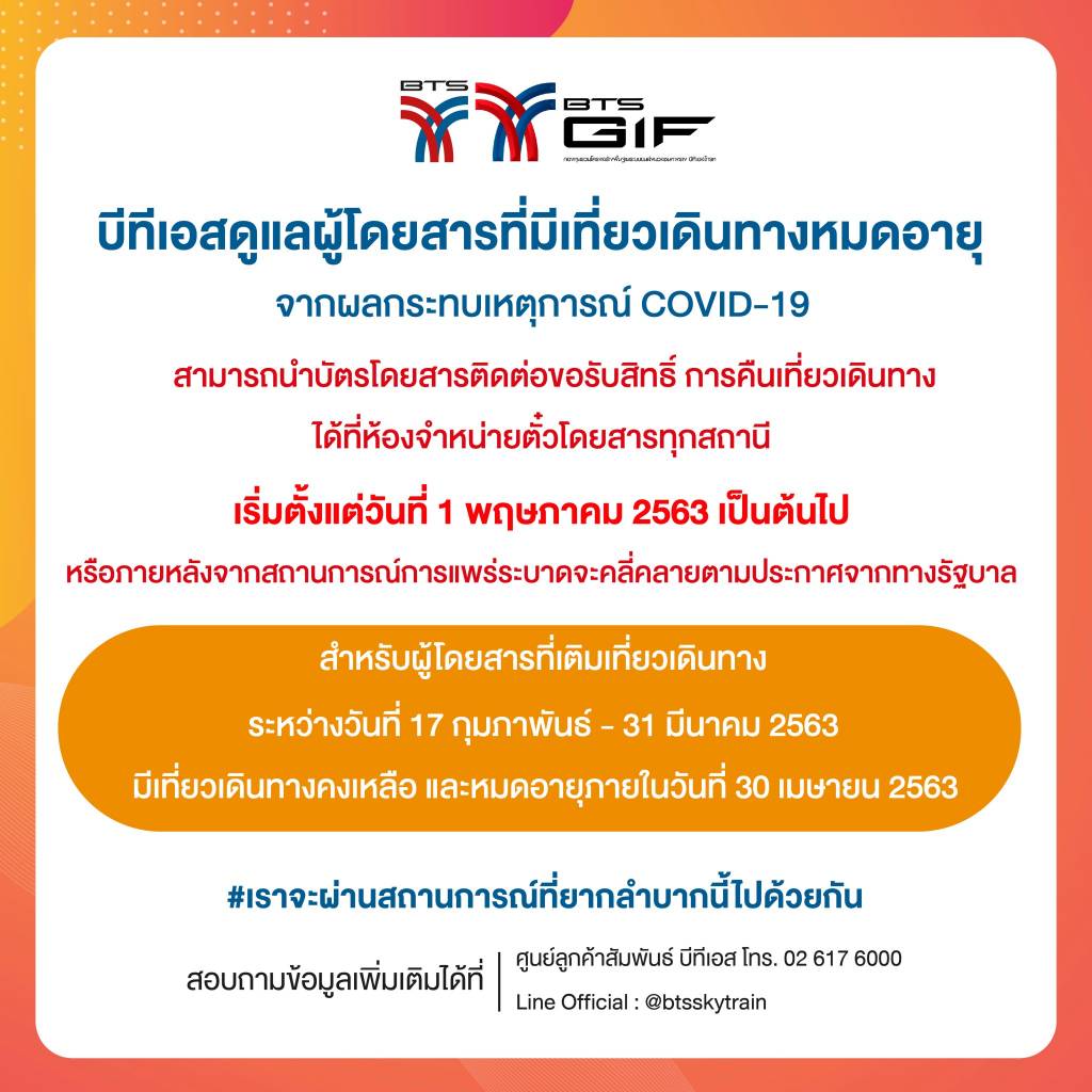 BTS ดูแลผู้โดยสารที่มีเที่ยวเดินทางหมดอายุจะผลกระทบเหตุการณ์ COVID-19