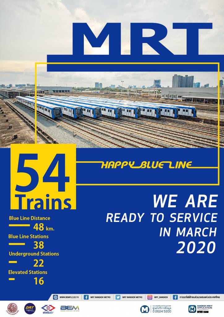 MRTสายสีน้ำเงิน 54 ขบวน 38 สถานี ครอบคลุมพื้นที่ใจกลางเมือง กทม. พร้อมเปิดบริการ 30 มีนาคม นี้