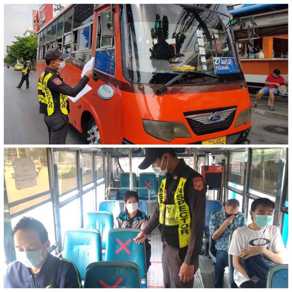 ด้าน สำนักงานขนส่งจังหวัดทั่วประเทศ เช่น ลำพูน อำนาจเจริญ อุทัยธานี ประจวบคีรีขันธ์ พะเยา ศรีสะเกษ สตูล นครสวรรค์ แพร่ ลพบุรี ระยอง ฉะเชิงเทรา นครปฐม หนองคาย นครราชสีมา บุรีรัมย์ ชัยภูมิ สระบุรี ปทุมธานี ตราด ขอนแก่น เพชรบุรี ตรัง ระนอง มหาสารคาม พังงา กำแพงเพชร ตาก สระแก้ว สุรินทร์ สำนักงานขนส่งกรุงเทพมหานคร พื้นที่ 3 พื้นที่ 4 ดำเนินการการตามมาตรการปฏิบัติเพื่อควบคุมการแพร่ระบาดของโรคติดเชื้อไวรัสโคโรนา 2019 (COVID-19) สำหรับผู้ประกอบการขนส่งด้วยรถสาธารณะและผู้โดยสาร อย่างเคร่งครัด มีมาตรการคัดกรองผู้โดยสารทุกคนก่อนการเดินทาง หากตรวจพบผู้โดยสารที่มีอุณหภูมิสูง เกินกว่า 37.5 องศาเซลเซียส ห้ามเดินทางโดยเด็ดขาด จัดที่นั่งภายในรถโดยสาร และที่นั่งคอยภายในสถานีขนส่งผู้โดยสารเว้นระยะห่างอย่างน้อย 1 เมตร ตามมาตรการ Social Distancing เพื่อป้องกันการติดต่อสัมผัส นอกจากนี้ ให้จัดเตรียมคำถามสุขภาพ (แบบ ต.8-คค) เพื่อให้ผู้โดยสารกรอกข้อมูลอันเป็นประโยชน์ต่อการควบคุมโรคติดต่อ และรวบรวมส่งให้สำนักงานขนส่งจังหวัด ณ จุดสิ้นสุดการเดินทาง หรือต้องเตรียมไว้สำหรับให้เจ้าหน้าที่ตรวจสอบระหว่างการเดินทาง ตรวจสอบให้ผู้โดยสารทุกคนต้องสวมใส่หน้ากากอนามัยหรือหน้ากากผ้าก่อนขึ้นรถโดยสารและตลอดการเดินทาง