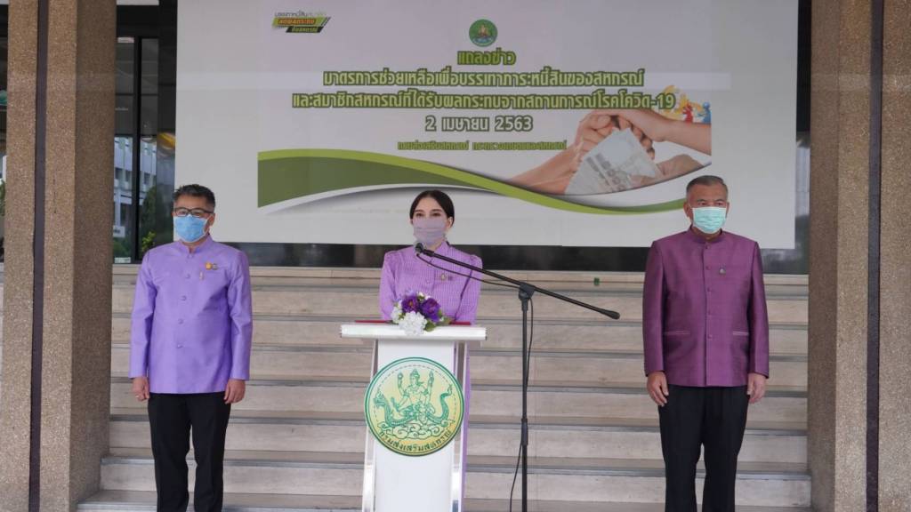 รัฐมนตรีช่วยว่าการกระทรวงเกษตรและสหกรณ์ กล่าวว่า กระทรวงเกษตรและสหกรณ์ตระหนักถึงความเดือดร้อนของสมาชิกสหกรณ์ และการดำเนินธุรกิจของสหกรณ์ ซึ่งได้รับผลกระทบจากสถานการณ์ไวรัสโควิค – 19 ระบาด ส่งผลให้รายได้ของสมาชิกสหกรณ์ลดลง ธุรกิจสหกรณ์หยุดชะงัก จึงได้กำหนดมาตรการช่วยเหลือเพื่อนบรรเทาภาระหนี้สิน ได้แก่ การขยายเวลาการชำระหนี้ การพักชำระหนี้เป็นการชั่วคราว การปรับลดอัตราดอกเบี้ยเงินกู้ และการปรับปรุงโครงสร้างหนี้ในส่วนการชำระค่าหุ้นของสมาชิก ขอให้ปรับลดหรืองดส่งค่าหุ้นรายเดือนเป็นการชั่วคราว หรืองดหักส่งค่าหุ้น ตามส่วนของเงินกู้จนกว่าจะเข้าสู่สถานการณ์ปกติ