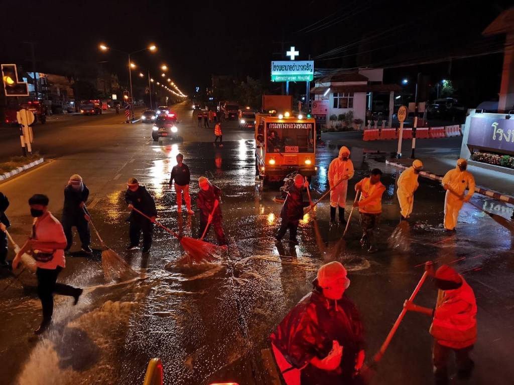 เมื่อวันที่ 1 เม.ย. 63 เวลา 21.00 น. กลุ่มภูมิใจไทอำนาจ นำโดยคุณวันเพ็ญ ตั้งสกุล ร่วมกับหน่วยงานในสังกัดกระทรวงคมนาคม นำโดยนายพิพัฒน์ อาจมีแก้ว ผู้อำนวยการแขวงทางหลวงอำนาจเจริญ นายศรุต รุ่งโรจน์นิมิตชัย ผู้อำนวยการแขวงทางหลวงชนบทอำนาจเจริญ เทศบาลเมืองอำนาจเจริญ นำโดยนายพสิษฐ์ กอมณี รองปลัดเทศบาลเมืองอำนาจเจริญ ผนึกกำลังร่วมกับ สภ.เมืองอำนาจเจริญ นำกำลังเจ้าหน้าที่ปฏิบัติการล้างถนนและฉีดพ่นน้ำยาฆ่าเชื้อโรค ย่านกลางเมืองอำนาจเจริญ เริ่มหน้าโรงพยาบาลอำนาจเจริญ ถนนอรุณประเสริฐ (ทุ่งสว่าง – ดอนหวาย) ซึ่งเป็นพื้นที่สาธารณะที่มีประชาชนใช้บริการหนาแน่น โดยได้รับการสนับสนุนรถน้ำจากเทศบาลตำบลโคกกลาง และเทศบาลตำบลอำนาจ ร่วมปฏิบัติหน้าที่ในครั้งนี้