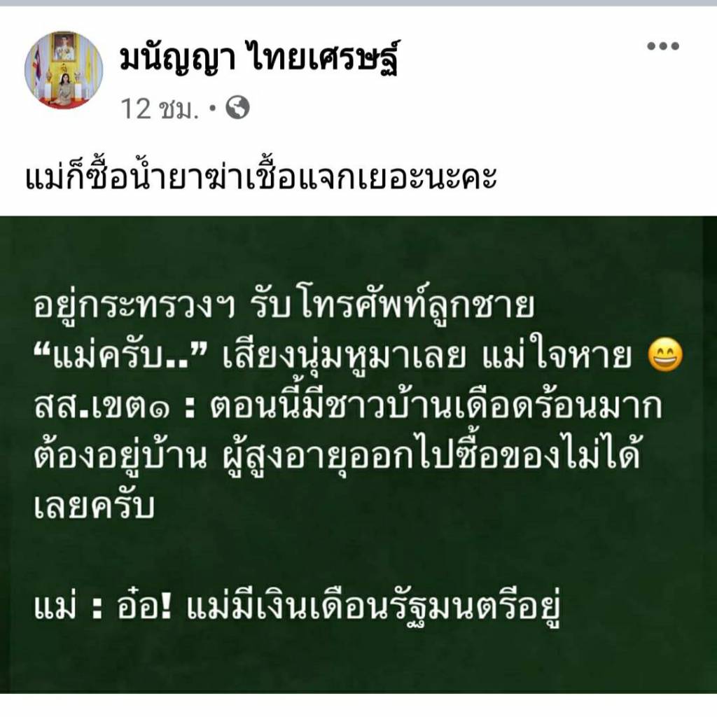 เมื่อวันที่ 9 เมษายน 2563 นางสาวมนัญญา ไทยเศรษฐ์ รัฐมนตรีช่วยว่าการกระทรวงเกษตรและสหกรณ์ โพสต์เฟซบุ๊กส่วนตัว