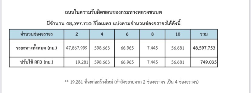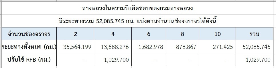 ทั้งนี้ ถนนที่อยู่ในความรับผิดชอบของกรมทางหลวง (ทล.) นั้น มีจำนวน 52,085.745 กม. โดยในช่วงระยะเวลา 3 ปี (2563-2565) มีแผนที่จะใช้แผ่นยางพาราหุ้มแบริเออร์คอนกรีตรวม 1,029.70 กม. ขณะที่กรมทางหลวงชนบท (ทช.) มีถนนในความรับผิดชอบ จำนวน 48,597.753 กม. โดยในช่วงระยะเวลา 3 ปี (2563-2565) มีแผนที่จะใช้แผ่นยางพาราหุ้มแบริเออร์คอนกรีต รวม 749.035 กม.