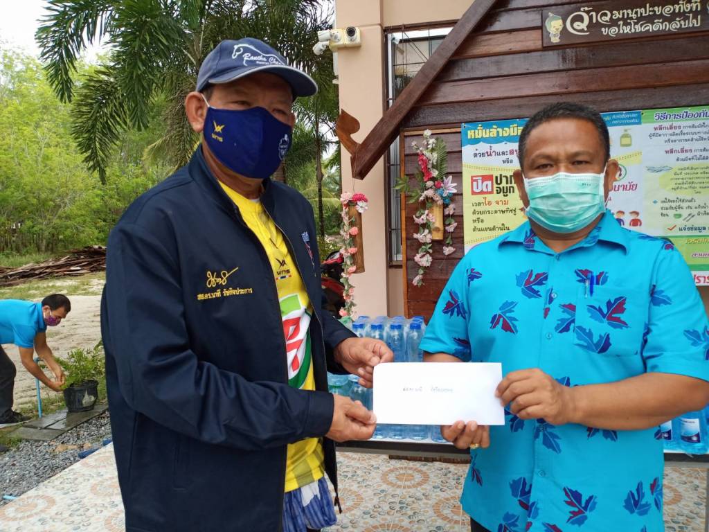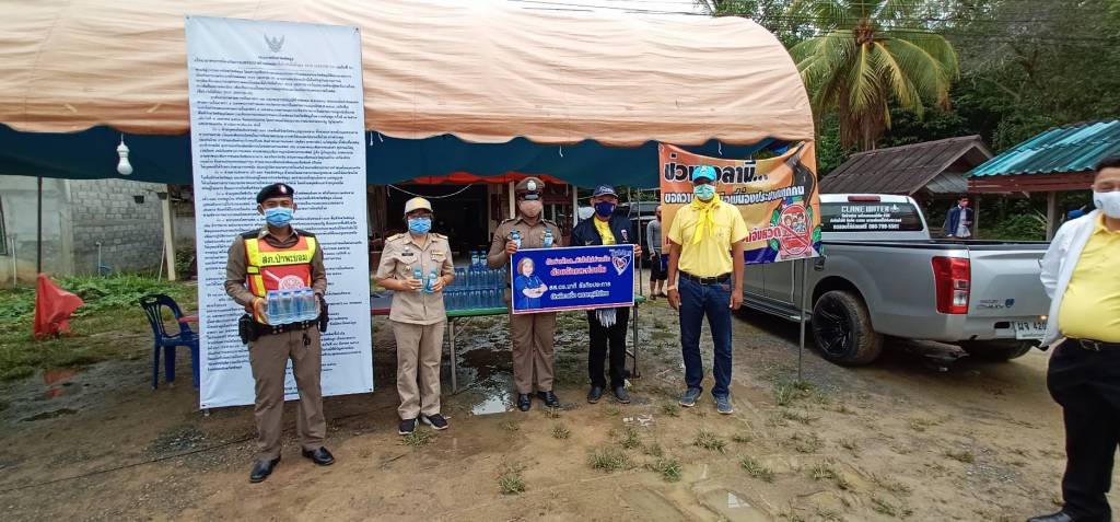 ดร.นาที ส.ส. แบบบัญชีรายชื่อ ภท. มอบน้ำดื่ม และแอลกอฮอล์ แก่เจ้าหน้าที่ ณ จุดคัดกรอง ในพื้นที่จังหวัดพัทลุง