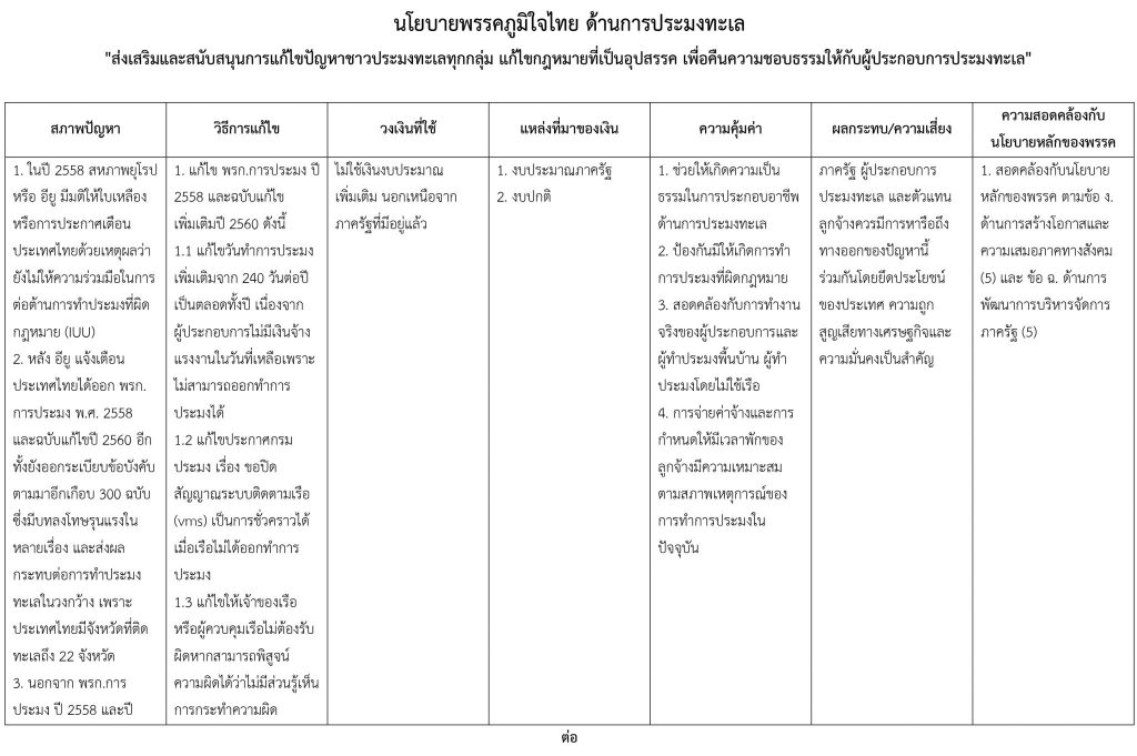 เชิญชวนให้ความเห็นเกี่ยวกับกรอบนโยบายของพรรคด้านประมงทะเล