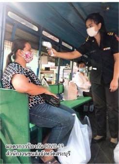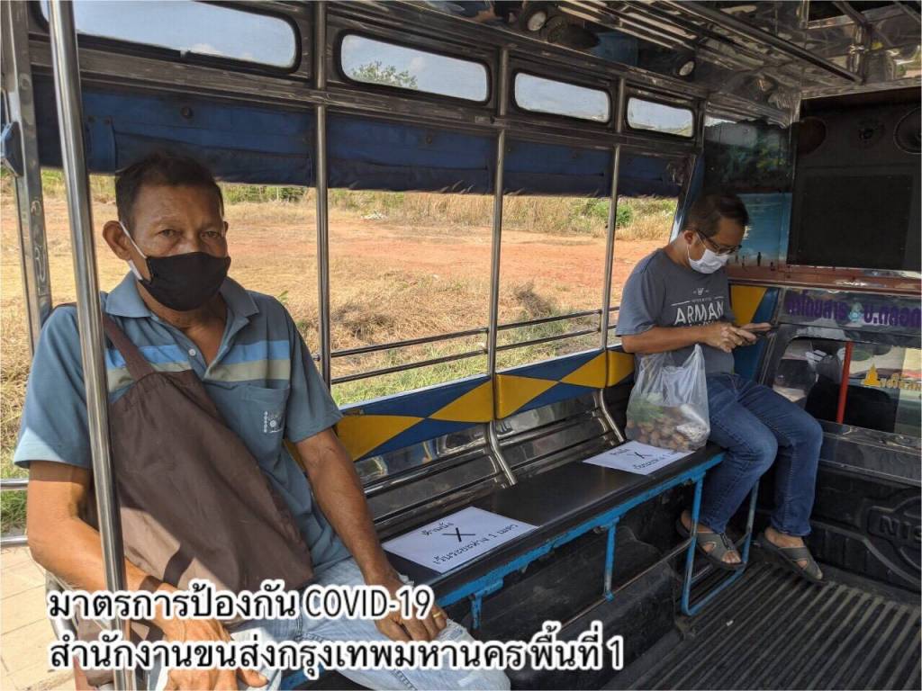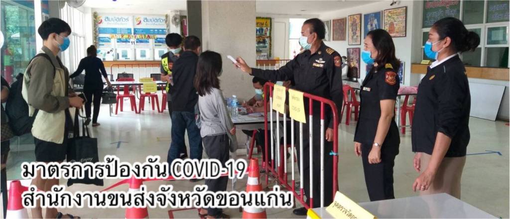 - ด้านอาคารสถานที่และสิ่งอำนวยความสะดวกในหน่วยงาน ทำความสะอาดฆ่าเชื้อโรคพื้นที่ให้บริการภายในสำนักงานขนส่งทุกวัน โดยเฉพาะจุดที่มีการสัมผัสบ่อยครั้ง เช่น เคาน์เตอร์บริการ ที่จับประตู ที่จับราวบันได ปุ่มกดลิฟต์ เป็นต้น และจัดให้มีสบู่ในห้องน้ำ เจลแอลกอฮอล์ล้างมือที่เคาน์เตอร์ให้บริการและจุดประชาสัมพันธ์