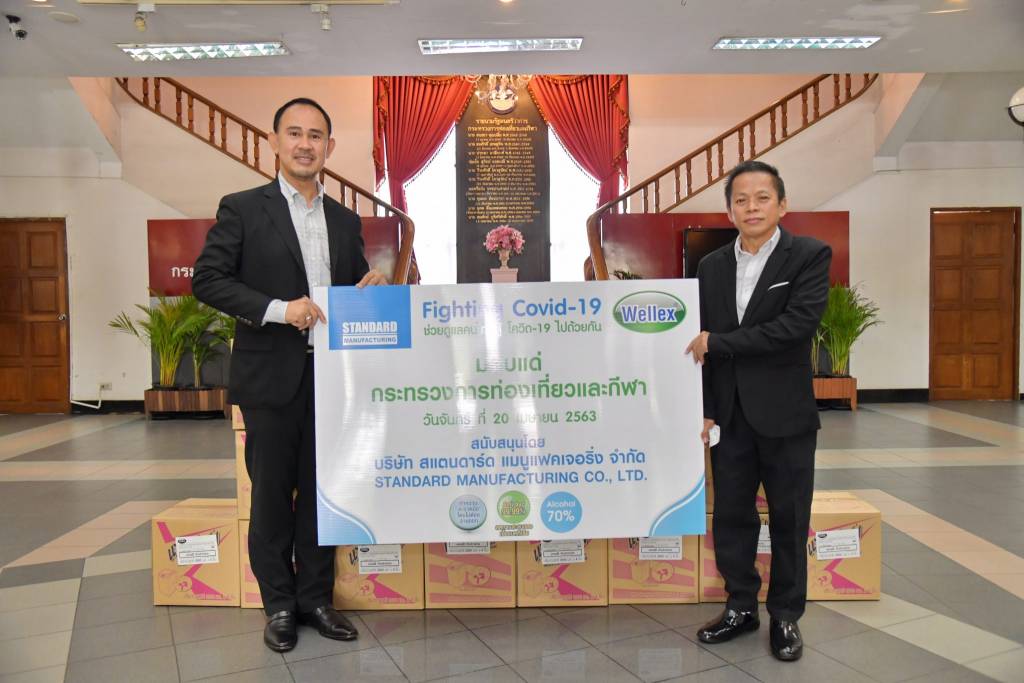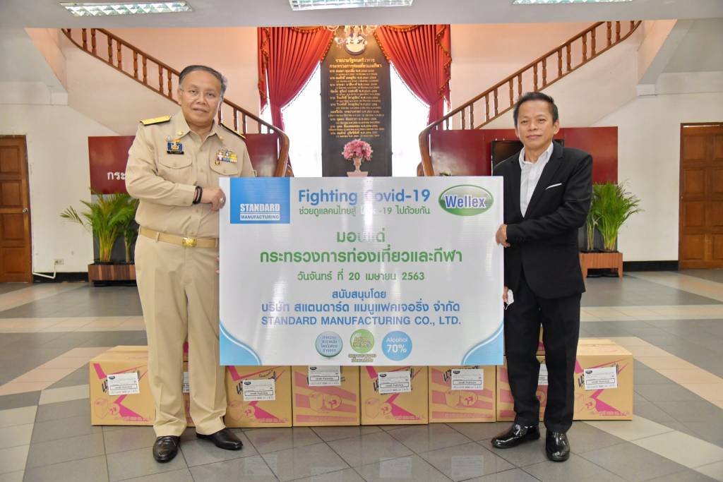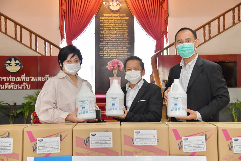 20 เมษายน 2563 เวลา 13:53ก.ท่องเที่ยวและกีฬา รับมอบแอลกอฮอล์ทำความสะอาดวันที่ 20 เมษายน 2563 เวลา 11.00 น. ณ ห้องโถง กระทรวงการท่องเที่ยวและกีฬา นายสิรภพ ดวงสอดศรี ที่ปรึกษารัฐมนตรีว่าการกระทรวงการท่องเที่ยวและกีฬา พร้อมด้วยนายเขมพล อุ้ยตยะกุล เลขานุการรัฐมนตรีว่าการกระทรวงการท่องเที่ยวและกีฬา รับมอบแอลกอฮอล์ทำความสะอาด จำนวน 80 แกลลอน จากบริษัท สแตนดาร์ด แมนูแฟคเจอริ่ง จำกัด โดยมี ดร.เผด็จ เย็นวิชัย เป็นผู้มอบ เพื่อใช้ในการป้องกันการติดเชื้อไวรัสโคโรนา 2019 (โควิด-19) และนำไปใช้ประโยชน์แก่ทางราชการต่อไป แชร์บทความนี้:
