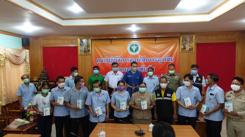 นายอาสพลธ์ กล่าวว่า ได้มีโอกาสสอบถามท่านสาธารณสุขอำเภอห้วยทับทันว่าเจ้าหน้าที่ รพ.สต. รวมทั้ง อสม. ต้องการอะไรเพื่อใช้ในการทำงานต่อสู้กับโรคโควิด-19 ซึ่งทราบว่าทางเจ้าหน้าที่และ อสม.ต้องการแอลกอฮอล์ เครื่องวัดอุณหภูมิ, หน้ากาก Face Shield และเครื่องดื่มต่างๆประจำจุดตรวจคัดกรองผู้เดินทางเข้าจังหวัดศรีสะเกษ จึงได้ประสานไปยังเครือข่ายเด็กและเยาวชนจังหวัดศรีสะเกษเพื่อขอสนับสนุน