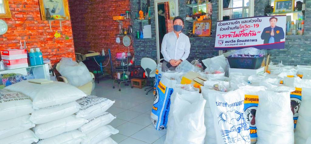 24 เมษายน 2563 เวลา 17:20"ส.ส.อนาวิล" เตรียมแจกข้าวสาร 6 ตัน และร่วมทำบุญสมทบทุนโรงทานแจกจ่ายสิ่งของจำเป็นในชีวิตประจำวันให้ประชาชนสู้ภัยโควิด-19ในยามที่บ้านเมืองทุกข์เข็ญ เช่นช่วงนี้ ที่เกิดวิกฤตเชื้อไวรัสโควิด-19 ระบาดหนัก ทุกคนต้องให้กำลังใจและแบ่งปันตามกำลังที่มีอยู่ “อนาวิล รัตนสถาพร” สมาชิกสภาผู้แทนราษฎรจังหวัดปทุมธานี เขต 3 พรรคภูมิใจไทย หนึ่งใน ส.ส.ภูมิใจไทย ได้เสียสละเงินเดือนตัวเอง 6 เดือน เพื่อนำไปเป็นทุนในการซื้อสิ่งของจำเป็นในชีวิตประจำวัน แจกจ่ายให้กับประชาชนที่เดือดร้อน วันที่ 24 เมษายน 2563 นายอนาวิล รัตนสถาพร ได้ร่วมทำบุญสมทบทุนโรงทาน ณ วัดพระธรรมกาย และจัดเตรียมข้าวสาร จำนวน 6 ตัน ( 6,000 กิโลกรัม) พร้อมอาหารแห้ง, หน้ากากอนามัย, เจลล้างมือ แจกพี่น้องประชาชนในพื้นที่ เขต 3 อ.คลองหลวง จ.ปทุมธานี ที่ได้รับความเดือดร้อน เพื่อเป็นการบรรเทาทุกข์จากสถานการณ์การแพร่ระบาดเชื้อโรคไวรัสโคโรนา 2019 (โควิด-19) อย่างต่อเนื่อง ด้วยความรักและห่วงใย “เราจะไม่ทิ้งกัน” อยู่บ้าน หยุดเชื้อ เพื่อชาติ “คนภูมิใจไทย คนไทยไม่ทิ้งกัน” แชร์บทความนี้:
