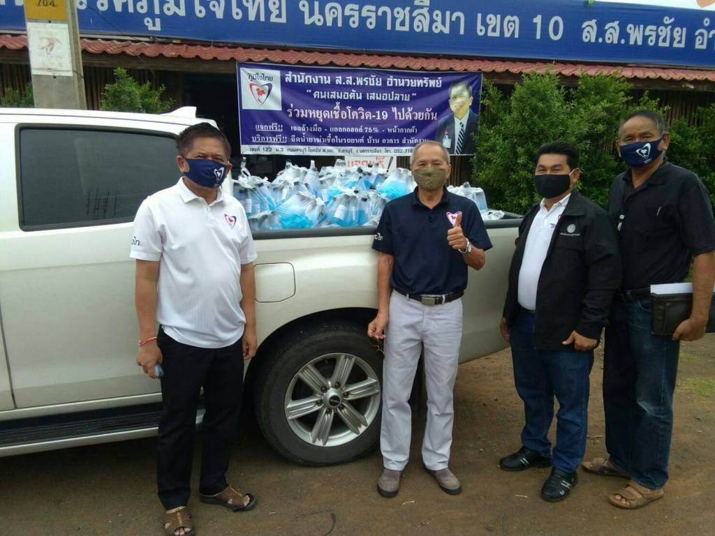 ‘พรชัย’ ส.ส. นครราชสีมา ห่วงใยพี่น้องประชาชนร่วมแจกจ่าย แอลกอฮอล์ล้างมือและหน้ากากผ้าอย่างต่อเนื่อง