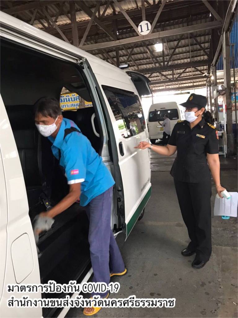 วันที่ 27 เมษายน 2563 สำนักงานขนส่งจังหวัดทั่วประเทศ ทั้งในกรุงเทพมหานครและต่างจังหวัด เช่น สมุทรปราการ บุรีรัมย์ นครสวรรค์ ลำปาง ชัยภูมิ ศรีสะเกษ เพชรบุรี ยโสธร ปราจีนบุรี นครปฐม แพร่ อุบลราชธานี เชียงราย ประจวบคีรีขันธ์ ฉะเชิงเทรา ระยอง ลพบุรี พัทลุง เลย เชียงใหม่ พระนครศรีอยุธยา นครศรีธรรมราช จันทบุรี สิงห์บุรี และสำนักงานขนส่งกรุงเทพมหานคร พื้นที่ 2 ดำเนินการตรวจสอบรถโดยสารสาธารณะทุกประเภท ทั้งรถโดยสารระหว่างจังหวัด และรถโดยสารภายในจังหวัด จัดที่นั่งภายในรถโดยสารเว้นระยะนั่ง หรือยืนห่างกัน อย่างน้อย 1 เมตร ตามนโยบาย Social Distancing รวมถึงการจัดพื้นที่นั่งคอยภายในสถานีขนส่งผู้โดยสารด้วยเช่นกัน
