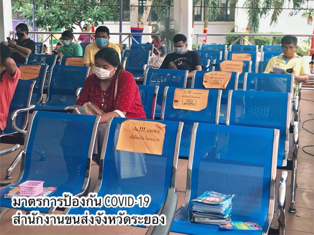 •ดำเนินการตามมาตรการ Social Distancing โดยเว้นระยะห่างของที่นั่งพักคอยของประชาชน กำหนดระยะห่างของตำแหน่งการยืนคอยรับบริการที่จุดประชาสัมพันธ์