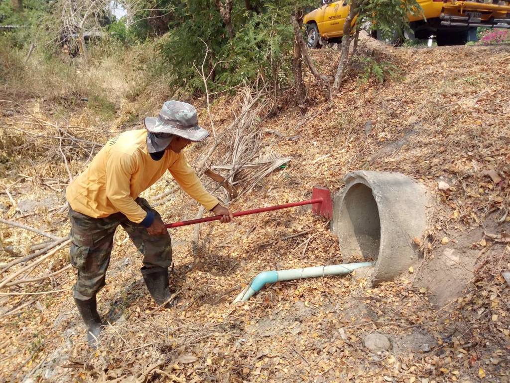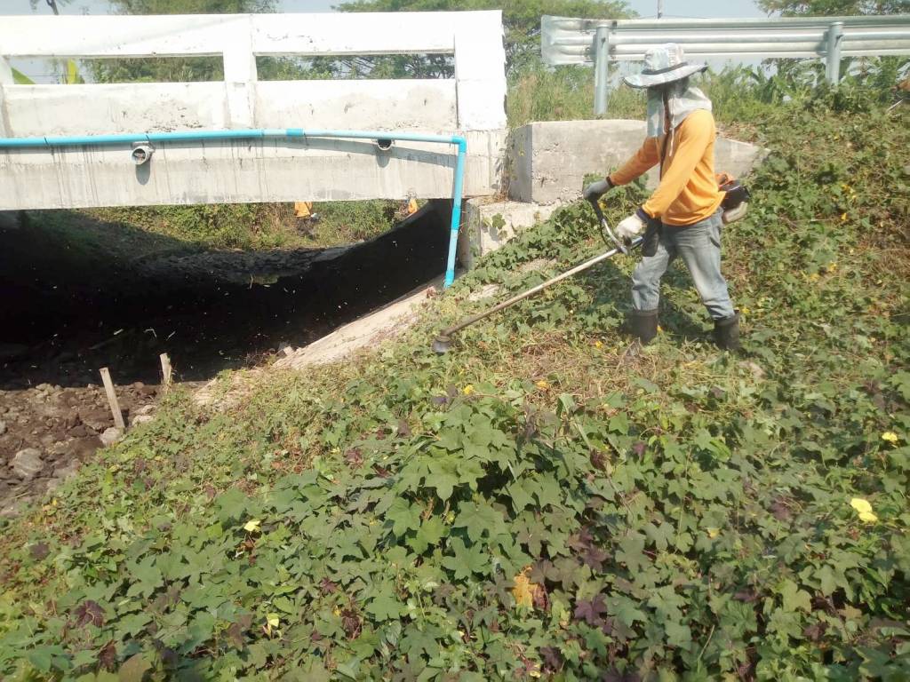 - ดำเนินการทำความสะอาดช่องทางระบายน้ำ ตัดหญ้า กำจัดวัชพืชที่ขวางทางระบายน้ำ ท่อลอด สะพาน