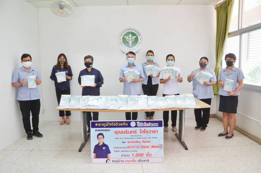 เมื่อวันที่ 28 เมษายน 2563 ณ ห้องประชุมกลุ่มงานสังคมสงเคราะห์ ชั้น 3 "กลุ่มภูมิใจไทย" นางสุขสมรวย วันทนียกุล เลขานุการัฐมนตรีว่าการกระทรวงคมนาคม พร้อมด้วย นางสาววันเพ็ญ ตั้งสกุล (ตุ๊ก) กลุ่มภูมิใจไทอำนาจ รับมอบหน้ากาก nano mask จากคุณนรินทร์ โกโรวารา director/ceo บริษัทFico Technology & Engineering จำกัด (FTEC)
