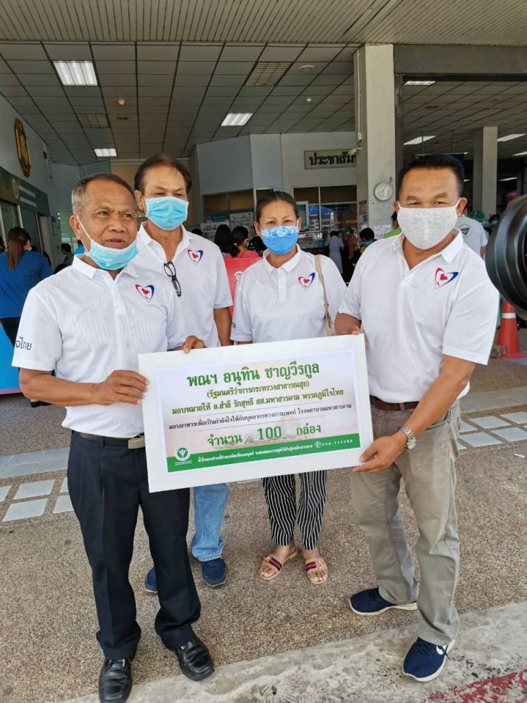 ‘สำลี’ ส.ส.บัญชีรายชื่อ ภท. พร้อมทีมงานเป็นตัวแทน มอบข้าวกล่องให้กับหมอ และพยาบาล ที่ รพ.มหาสารคาม