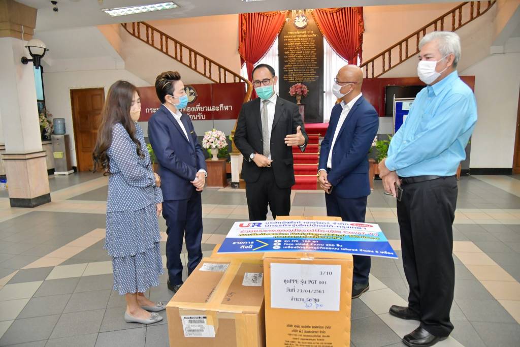 30 เมษายน 2563 เวลา 16:14ก.ท่องเที่ยวและกีฬา รับมอบชุดอุปกรณ์ช่วยลดความเสี่ยงติดเชื้อไวรัส COVID-19วันที่ 30 เมษายน 2563 ณ กระทรวงการท่องเที่ยวและกีฬา นายเขมพล อุ้ยตยะกุล เลขานุการรัฐมนตรีว่าการกระทรวงการท่องเที่ยวและกีฬา เป็นตัวแทนรับมอบ ชุดอุปกรณ์ช่วยลดความเสี่ยงติดเชื้อไวรัส COVID-19 จาก บริษัทอัพไรท์ เฮลท์แคร์ จำกัด และ นักธุรกิจรุ่นใหม่ปักษ์ใต้-กรุงเทพฯ โดยชุดอุปกรณ์ประกอบด้วย 1. ชุด PPE จำนวน 100 ชุด 2. ชุด Face shield จำนวน 200 ชิ้น 3. เครื่องวัดอุณหภูมิด้วยระบบ Infrared จำนวน 5 เครื่อง เพื่อช่วยลดความเสี่ยงติดเชื้อไวรัส COVID-19 และนำไปใช้ประโยชน์แก่ทางราชการต่อไป แชร์บทความนี้: