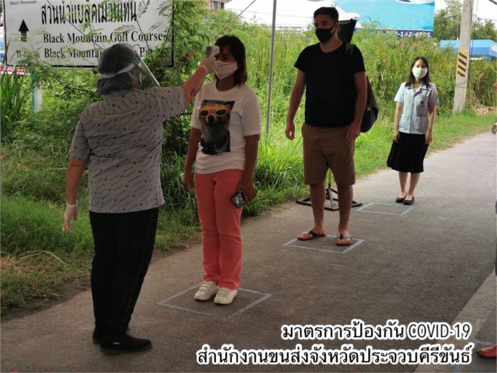 •ดำเนินการตามมาตรการ Social Distancing จัดที่นั่งพักคอยของประชาชน กำหนดพื้นที่ยืน โดยเว้นระยะห่างระหว่างบุคคลอย่างน้อย 1-2 เมตร