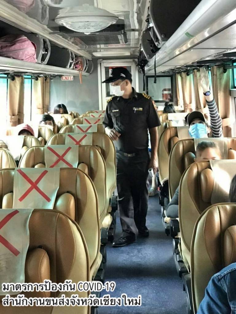 วันที่ 1 พฤษภาคม 2563 สำนักงานขนส่งจังหวัดทั่วประเทศ ทั้งในกรุงเทพมหานครและต่างจังหวัด บูรณาร่วมกับหน่วยในที่เกี่ยวข้องในพื้นที่ เช่น นครสวรรค์ ฉะเชิงเทรา สมุทรปราการ บุรีรัมย์ อุตรดิตถ์ ราชบุรี แพร่ ศรีสะเกษ ลพบุรี นครปฐม สตูล หนองคาย ตราด อุบลราชธานี ชัยนาท ลำพูน เพชรบุรี กระบี่ สงขลา สระแก้ว เชียงใหม่ และกองตรวจการขนส่งทางบก ดำเนินการตรวจสอบรถโดยสารสาธารณะทุกประเภท ทั้งรถโดยสารระหว่างจังหวัด และรถโดยสารภายในจังหวัด จัดที่นั่งภายในรถโดยสารเว้นระยะนั่ง หรือยืนห่างกัน อย่างน้อย 1 เมตร ตามนโยบาย Social Distancing รวมถึงการจัดพื้นที่นั่งคอยภายในสถานีขนส่งผู้โดยสารด้วยเช่นกัน นอกจากนี้ ทุกแห่งต้องมีมาตรการคัดกรองผู้โดยสารทุกคนก่อนการเดินทาง รวมถึงตรวจคัดกรองพนักงานขับรถและผู้ประจำรถ หากพบผู้ที่มีอุณหภูมิร่างกายสูงเกินกว่า 37.5 องศาเซลเซียส ห้ามเดินทางโดยเด็ดขาด รวมทั้งดูแลให้ผู้โดยสารกรอกข้อมูลคำถามสุขภาพ ตามแบบ ต.8-คค ที่ระบุจุดเดินทางที่ออกและจุดหมายปลายทางที่เป็นประโยชน์ต่อการควบคุมโรคติดต่อ สวมหน้ากากอนามัยหรือหน้ากากผ้าก่อนขึ้นรถโดยสารและตลอดการเดินทาง และจัดให้บริการเจลแอลกอฮอล์ล้างมือด้วย
