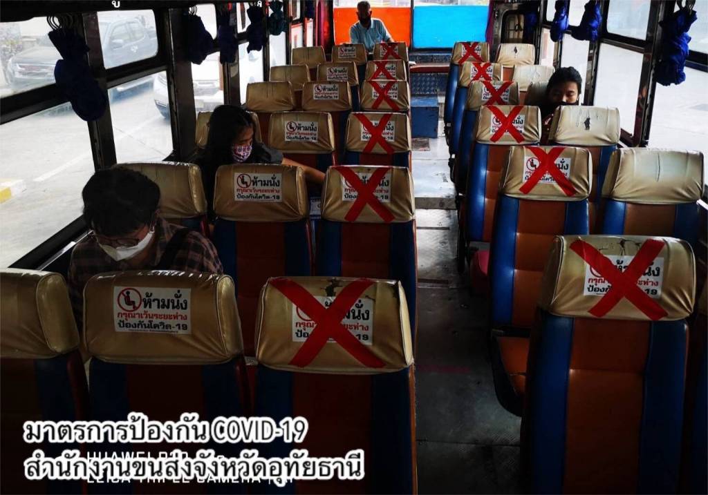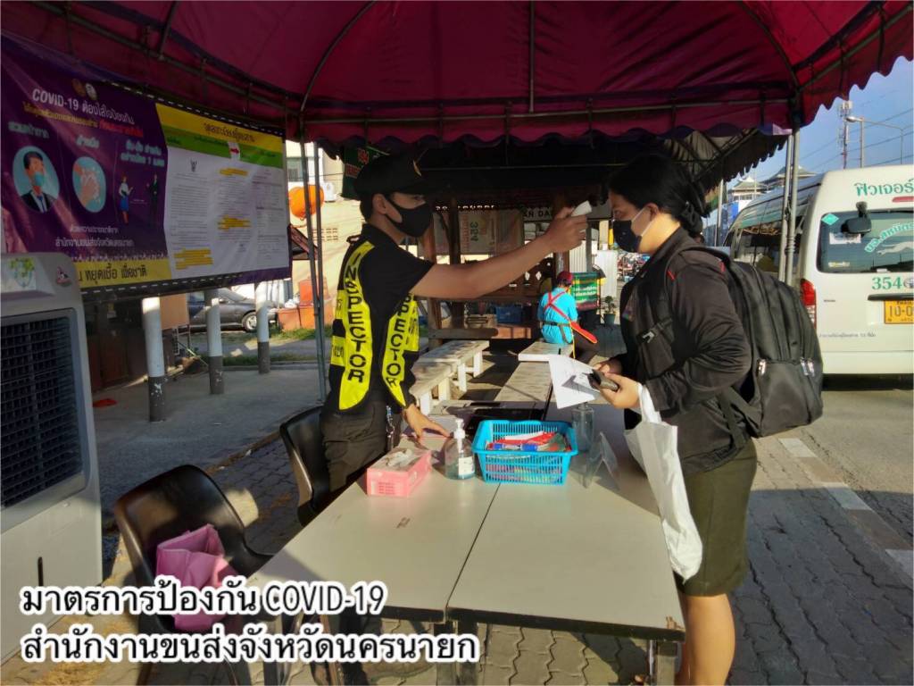 วันที่ 2 พฤษภาคม 2563 สำนักงานขนส่งจังหวัดทั่วประเทศ ทั้งในกรุงเทพมหานครและต่างจังหวัด เช่น นราธิวาส บุรีรัมย์ มุกดาหาร ขอนแก่น หนองคาย นครสวรรค์ เชียงราย นครปฐม ลำปาง มหาสารคาม อุบลราชธานี อุตรดิตถ์ สมุทรปราการ เพชรบุรี ฉะเชิงเทรา อำนาจเจริญ ราชบุรี พิษณุโลก จันทบุรี ระนอง นนทบุรี ประจวบคีรีขันธ์ นครนายก เชียงใหม่ ยโสธร สระแก้ว อุทัยธานี และกองตรวจการขนส่งทางบก ดำเนินการตรวจสอบรถโดยสารสาธารณะทุกประเภท ทั้งรถโดยสารระหว่างจังหวัด และรถโดยสารภายในจังหวัด จัดที่นั่งภายในรถโดยสารเว้นระยะนั่ง หรือยืนห่างกัน อย่างน้อย 1 เมตร ตามนโยบาย Social Distancing รวมถึงการจัดพื้นที่นั่งคอยภายในสถานีขนส่งผู้โดยสาร และจัดให้บริการเจลแอลกอฮอล์ล้างมือด้วย นอกจากนี้ ผู้ให้บริการต้องมีมาตรการคัดกรองผู้โดยสารทุกคนก่อนการเดินทาง รวมถึงตรวจคัดกรองพนักงานขับรถและผู้ประจำรถ หากพบผู้ที่มีอุณหภูมิร่างกายสูงเกินกว่า 37.5 องศาเซลเซียส ห้ามเดินทางโดยเด็ดขาด รวมทั้งดูแลให้ผู้โดยสารที่เดินทางข้ามพื้นที่จังหวัด กรอกข้อมูลคำถามสุขภาพ ตามแบบ ต.8-คค ที่ระบุจุดเดินทางที่ออกและจุดหมายปลายทางที่เป็นประโยชน์ต่อการควบคุมโรคติดต่อ พร้อมประชาสัมพันธ์ให้สวมหน้ากากอนามัยหรือหน้ากากผ้าก่อนขึ้นรถโดยสารและตลอดการเดินทาง และหมั่นล้างมือด้วยแอลกอฮอล์ชนิดเจลหรือน้ำอยู่เสมอ