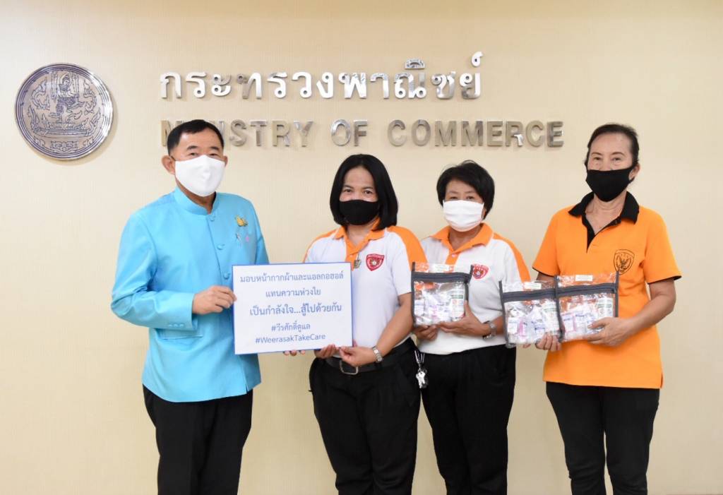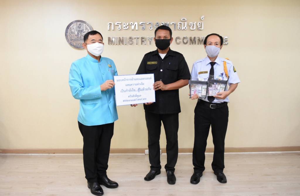 ทั้งนี้ ในสถานการณ์การแพร่ระบาดของไวรัสโควิด-19 รมช.พาณิชย์ ได้ขอความร่วมมือบุคลากรประจำกระทรวงพาณิชย์และประชาชนทั่วไปให้สวมหน้ากากอนามัยหรือหน้ากากผ้าในการปฏิบัติงานและติดต่อราชการ เว้นระยะนั่ง หรือยืนห่างกัน อย่างน้อย 1 เมตร ตามนโยบาย Social Distancing หมั่นล้างมือด้วยแอลกอฮอล์ชนิดเจลหรือน้ำอยู่เสมอ ตลอดจนทำความสะอาดฆ่าเชื้อโรคพื้นที่ภายในอาคาร โดยเฉพาะจุดที่มีการสัมผัสบ่อยครั้ง เช่น ที่จับประตู ที่จับราวบันได และปุ่มกดลิฟต์ เป็นต้น เพื่อลดความเสี่ยงในการติดต่อแพร่กระจายของโรค และฝ่าวิกฤตโควิด-19 ไปด้วยกันอย่างสมดุล โดยการปรับตัวสู่การจัดระเบียบชีวิตวิถีใหม่ หรือ New Normal อย่างมีสติ เพื่อประโยชน์ของตนเองและส่วนรวม
