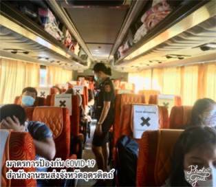 ทั้งนี้ กรมการขนส่งทางบก กำชับให้สำนักงานขนส่งทุกแห่ง ดำเนินการตามมาตรการดังกล่าวอย่างเคร่งครัด บูรณาการร่วมกับทุกหน่วยงานที่เกี่ยวข้อง โดยวันนี้ (11 พฤษภาคม 2563) สำนักงานขนส่งจังหวัดทั่วประเทศ เช่น นครปฐม บุรีรัมย์ มุกดาหาร พะเยา สมุทรปราการ นราธิวาส อุตรดิตถ์ ศรีสะเกษ ขอนแก่น ระยอง เชียงราย เชียงใหม่ อุบลราชธานี ฉะเชิงเทรา นครสวรรค์ อำนาจเจริญ มหาสารคาม แพร่ เพชรบุรี ลพบุรี กาญจนบุรี สุรินทร์ สตูล นครนายก นครศรีธรรมราช อุดรธานี เพชรบูรณ์ เลย นนทบุรี ระนอง สงขลา อุทัยธานี แม่ฮ่องสอน สิงห์บุรี สกลนคร ดำเนินการตรวจสอบรถโดยสารสาธารณะทุกประเภททั้งที่สถานีขนส่งผู้โดยสารและจุดตรวจคัดกรองของจังหวัด ต้องเว้นระยะนั่ง หรือยืนห่างกัน อย่างน้อย 1 เมตร ทั้งภายในรถโดยสาร และที่นั่งคอยภายในสถานีขนส่งผู้โดยสาร นอกจากนี้ ยังมีมาตรการคัดกรองผู้โดยสารทุกคนก่อนการเดินทาง หากตรวจพบผู้โดยสารที่มีอุณหภูมิสูง เกินกว่า 37.5 องศาเซลเซียส ห้ามเดินทางโดยเด็ดขาด รวมทั้งให้กรอกข้อมูลคำถามสุขภาพ ตามแบบ ต.8-คค ที่ระบุจุดเดินทางที่ออกและจุดหมายปลายทาง ชื่อ ที่อยู่ เบอร์โทรศัพท์ เป็นประโยชน์ต่อการควบคุมโรคติดต่อ และให้คำแนะนำตรวจสอบให้ผู้โดยสารทุกคนต้องสวมใส่หน้ากากอนามัยหรือหน้ากากผ้าก่อนขึ้นรถโดยสารและตลอดการเดินทาง และให้ประชาสัมพันธ์การปรับเวลาให้บริการของรถโดยสารสาธารณะให้ประชาชนทราบด้วย พร้อมกันนี้ กำชับสำนักงานขนส่งจังหวัดทุกแห่ง ประสานผู้ประกอบการขนส่งในพื้นที่ เพิ่มความเข้มข้นในการตรวจสอบรถโดยสารไม่ประจำทาง (รถเช่าหมา) และรถยนต์รับจ้าง ให้ปฏิบัติตามมาตรการต่างๆ ที่ทางภาครัฐกำหนดอย่างเคร่งครัด