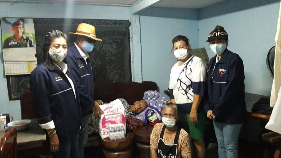 และเยี่ยม นายสวัสดิ์ บุญเจริญ และนายฉาว เจตน์เสธ ซึ่งทั้ง 2 เป็นผู้ป่วยติดเตียง ครอบครับมีฐานะยากจนอาศัยอยู่ ที่ชุมชนมหาดไทย 1 ถนนเฉลิมพระเกียรติ ร9 แยก 28 แขวงดอกไม้ เขตประเวศ กรุงเทพมหานคร โดยได้มอบแพมเพิส และนมให้กับคุณตาทั้งสอง