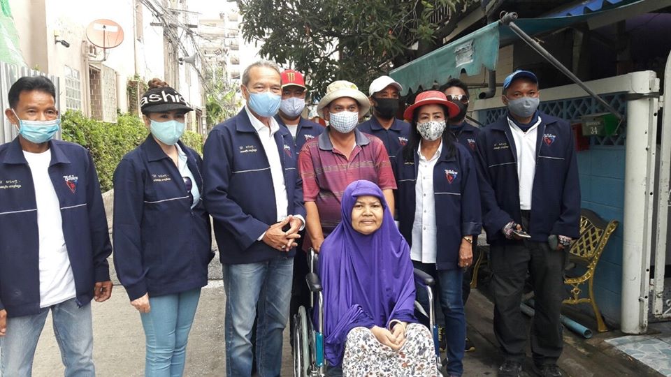 ต่อจากนั้น ได้เดินทางไปมอบรถวีลแชร์ให้กับนายมานพ เพียวอยู่ ผู้พิการ ที่ชุมชนร่วมใจ ซอยอ่อนนุช 45 เขตสวนหลวง กรุงเทพมหานคร