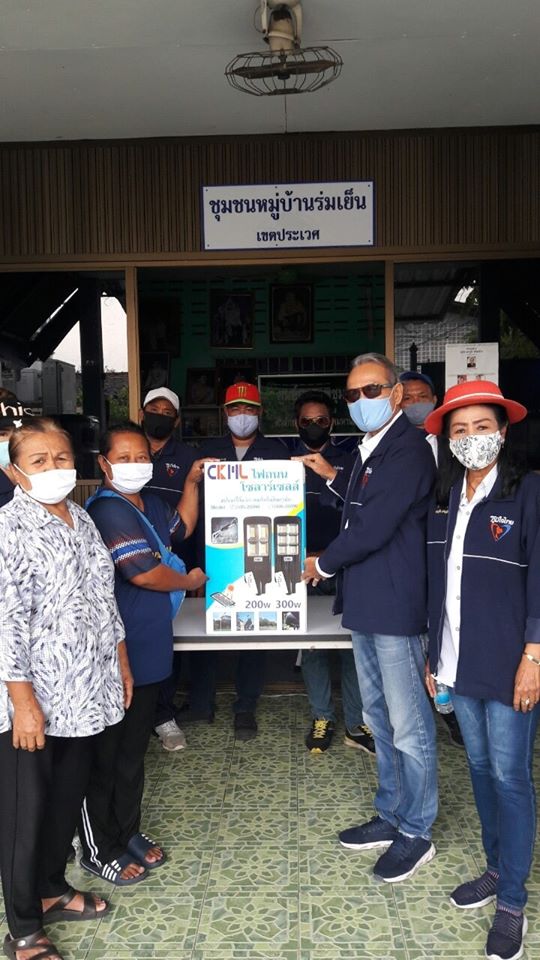 มอบชุดโคมไฟโซล่าเซลล์ให้กับชุมชนหมู่บ้านร่มเย็น แขวงหนองบอนเขตประเวศ และชุมชนเอื้ออารีย์ เขตสวนหลวง กรุงเทพมหานคร เพื่อให้แสงสว่าง และสร้างความปลอดภัยให้กับพี่น้องในชุมชน