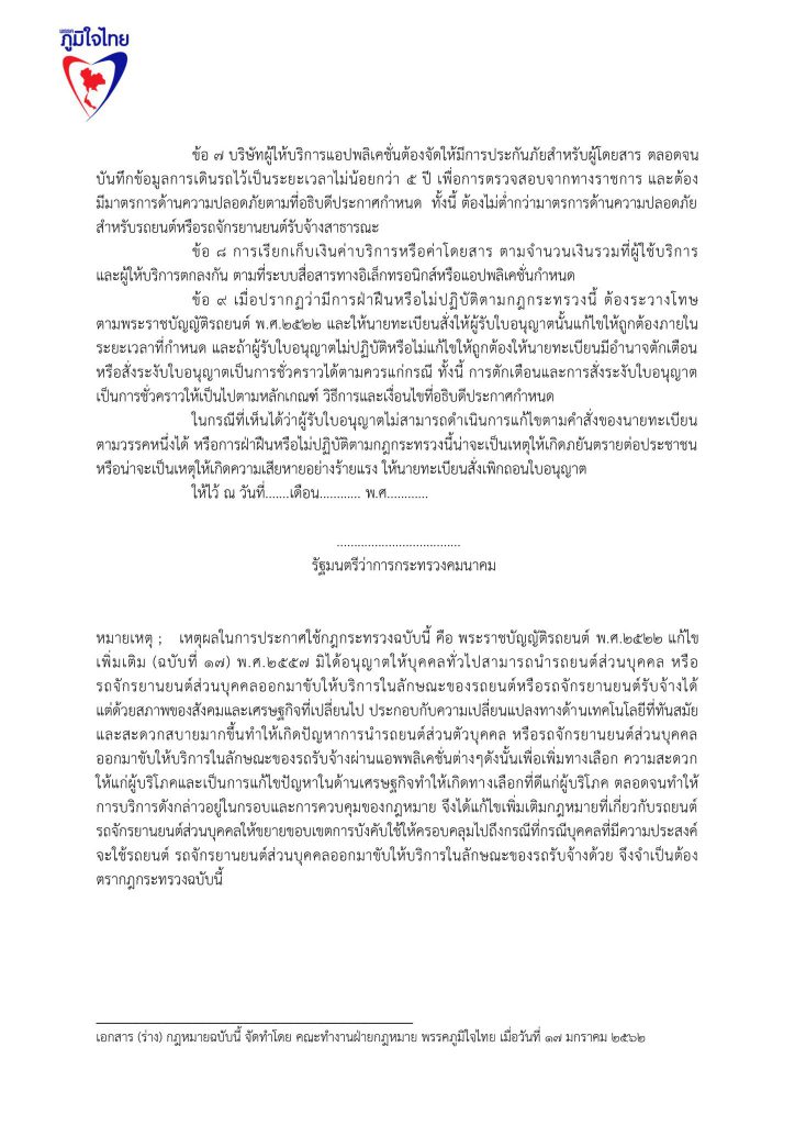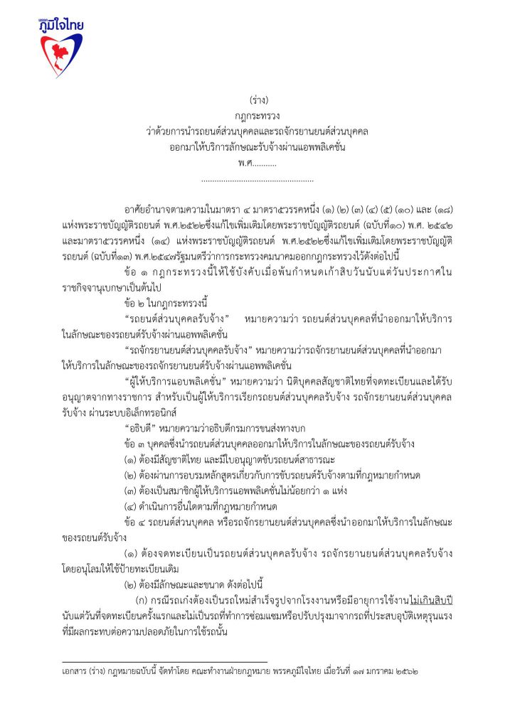 17 มกราคม 2562 เวลา 19:24ร่วมลงชื่อ...ร่างแก้ไขกฎกระทรวงนำรถส่วนตัวให้บริการรับจ้าง..ขับแกร็บถูกกฎหมายพรรคภูมิใจไทย ลดอำนาจรัฐ ขับGrab ถูกกฎหมาย แก้กฎหมายขนส่ง เพื่อปากท้องประชาชน การนำทรัพย์สินส่วนตัว มาสร้างรายได้ ผ่าน เทคโนโลยีดิจิทัล ไม่ว่าจะเป็นแพลตฟอร์ม แอพพลิเคชั่นต่างๆ ที่สามารถจับคู่ระหว่างผู้ให้บริการกับผู้รับบริการ เข้ามาส่งเสริมและเชื่อมโยงอุตสาหกรรมการท่องเที่ยวและการบริการทุกรูปแบบ ให้เกิดการทำธุรกิจ การประกอบอาชีพ สร้างงาน สร้างรายได้ โดยที่จะต้องมีการแก้ไขกฎหมายที่เป็นอุปสรรคต่อการทำมาหากินของประชาชน แชร์บทความนี้: