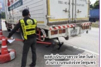 ในส่วนสำนักงานขนส่งจังหวัดอื่น 61 จังหวัด ตรวจวัดควันดำ จำนวน 58 คัน (รถบรรทุก 53 คัน,รถโดยสารประจำทาง 3คัน,รถโดยสารไม่ประจำทาง 2 คัน) พบรถที่มีค่าควันดำเกินเกณฑ์มาตรฐานที่ราชการกำหนด จำนวน 1 คัน และออกใบเตือน จำนวน 1 คัน