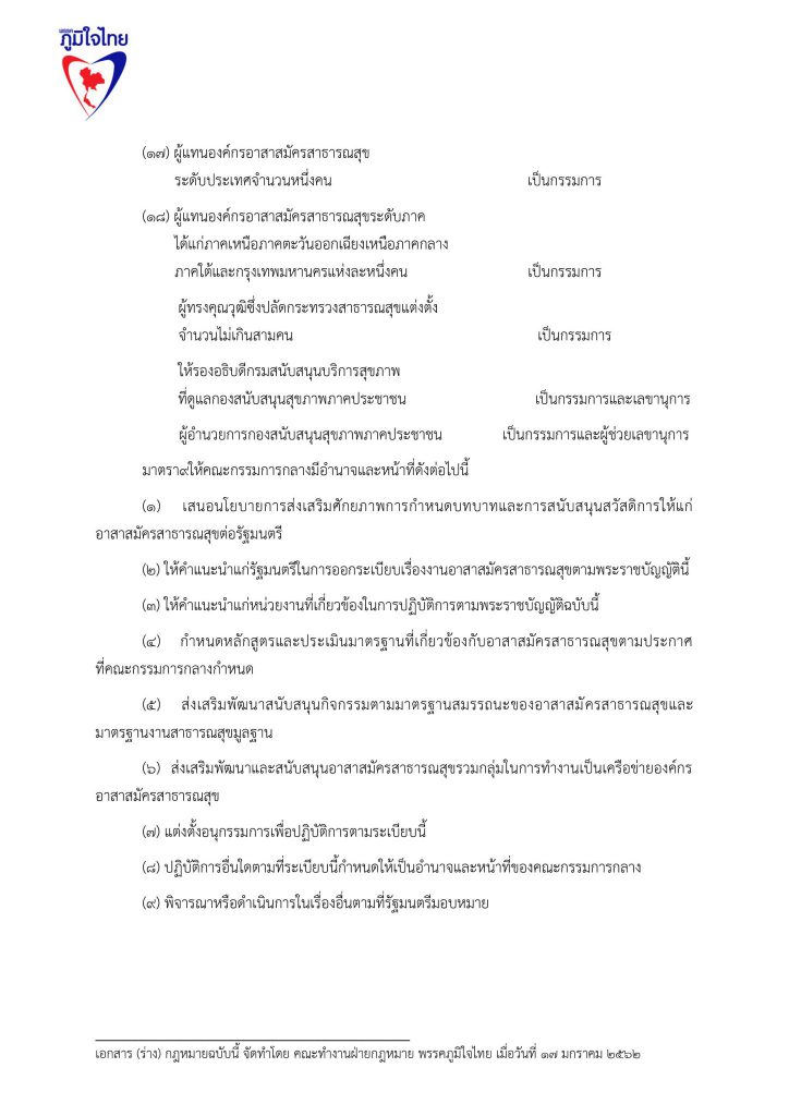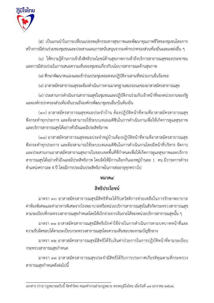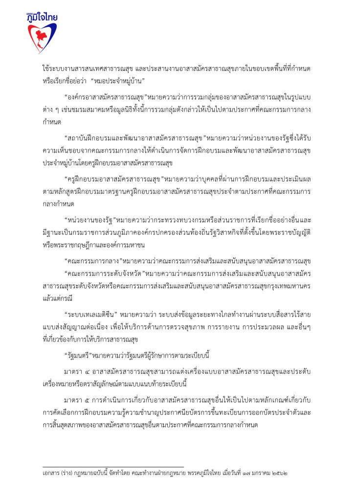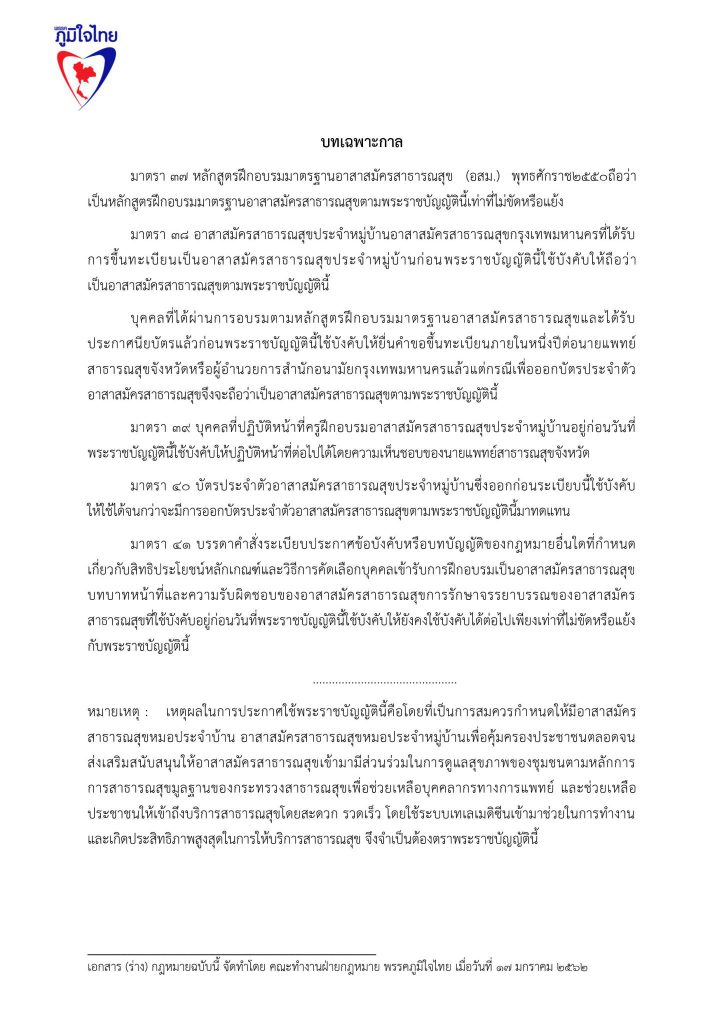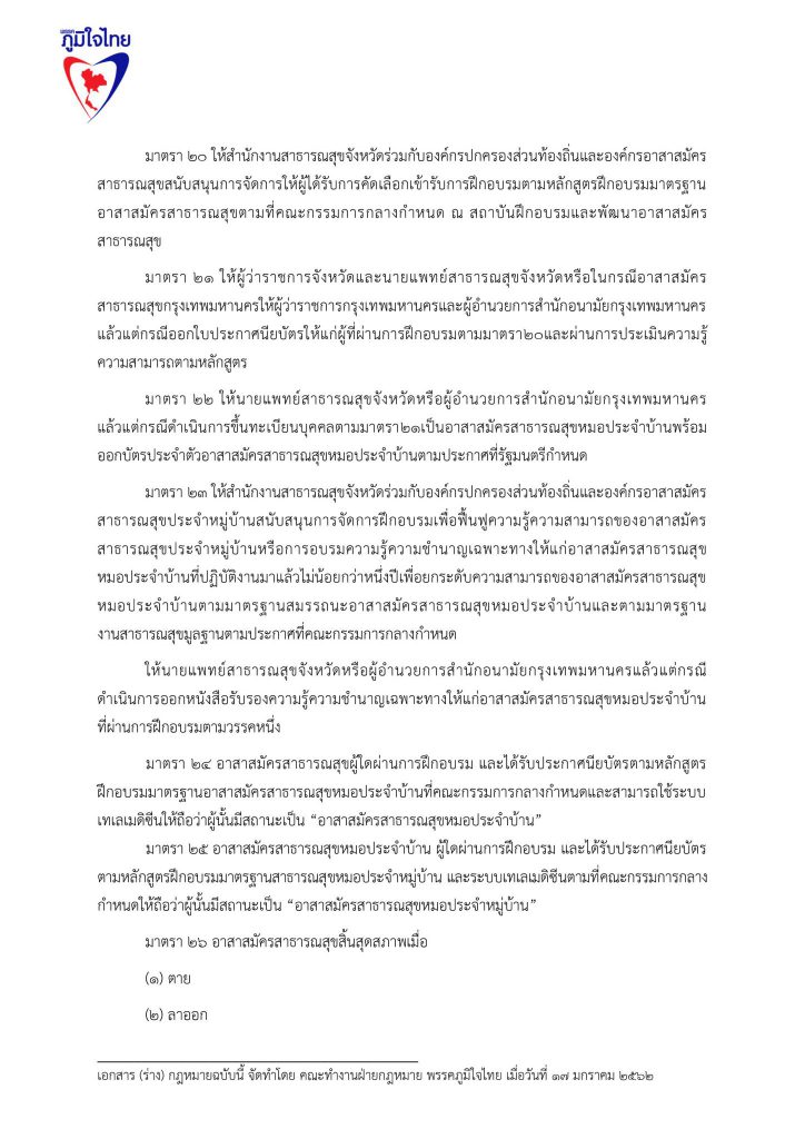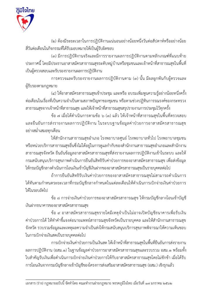 17 มกราคม 2562 เวลา 19:22ร่วมลงชื่อ … ร่างแก้ไขกฎหมาย อสม.เป็นหมอประจำบ้านพรรคภูมิใจไทย ลดอำนาจรัฐ .. ยกระดับ อสม.เป็นหมอประจำบ้าน ค่าตอบแทน 2,500-10,000 ..เพื่อปากท้องประชาชน อสม.ทั่วประเทศ 1.06 ล้านคน ทำงานด้วยความทุ่มเท เสียสละ แต่มีรายได้ต่ำ อาจหารายได้เพิ่มขึ้นจากการทำงาน การรับจ้าง การดูแลผู้สูงอายุและผู้ป่วย การยกระดับการทำงานของ อสม. ทั้งระบบให้มีศักยภาพการทำงานเพิ่มขึ้น รวมทั้งมีเครื่องมือ และงบประมาณในการปฏิบัติงานเพิ่มขึ้นด้วยการเข้าอบรมตามหลักสูตรอสม. หมอประจำบ้าน จะได้ค่าตอบแทนให้กับบุคคลผู้เสียสละเหล่านี้ พรรคภูมิใจไทย จัดให้มีร่างกฎหมายหรือระเบียบที่เกี่ยวกับการกำหนดคุณสมบัติของหมอ ประจำบ้าน หมอประจำหมู่บ้าน เพื่อยกระดับขีดความสามารถของ อสม.เดิม ให้สามารถปฏิบัติงาน ด้านสาธารณสุขได้อย่างมีประสิทธิภาพ ร่วมลงชื่อสนับสนุนร่างพระราชบัญญัติ ว่าด้วยอาสาสมัครสาธารณสุขหมอประจำบ้าน เพื่อคุณภาพชีวิตที่ดีขึ้นของคนไทย แชร์บทความนี้: