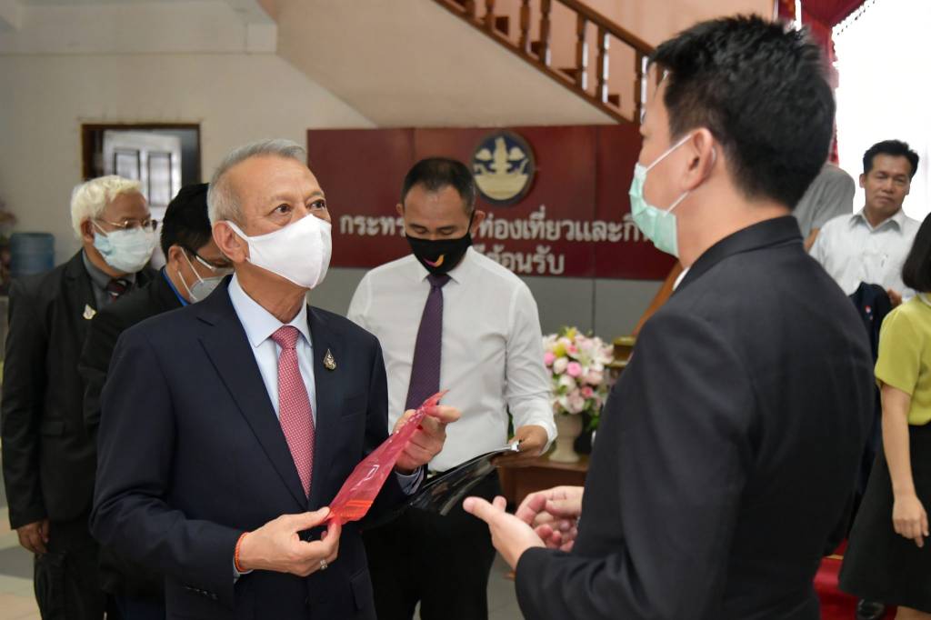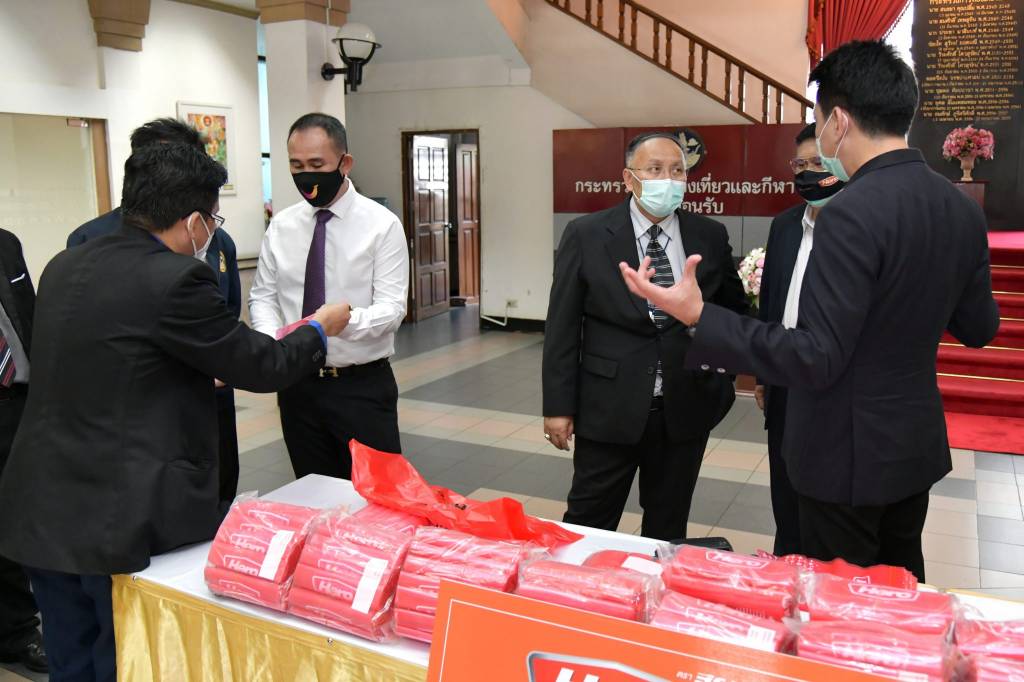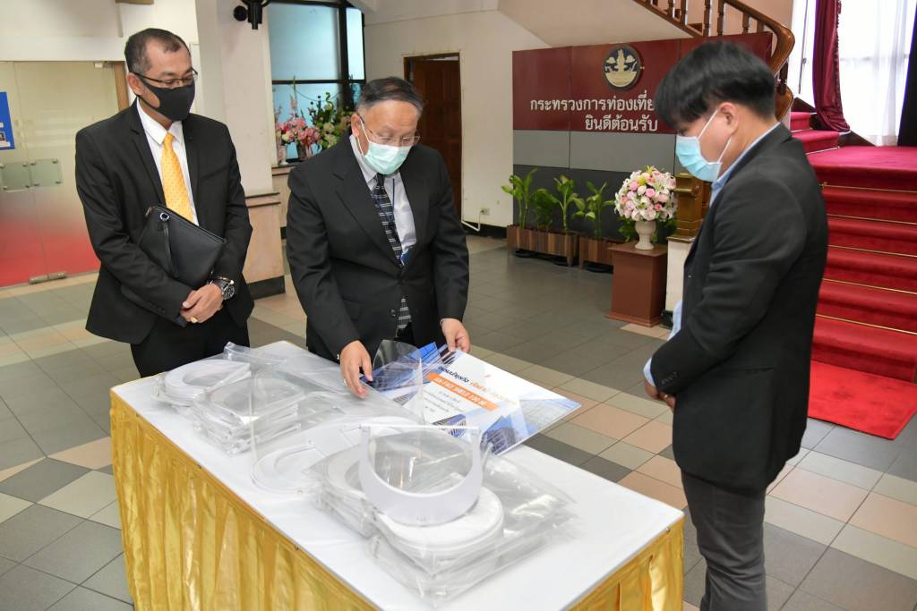 ขณะที่ นายสิรภพ ดวงสอดศรี ที่ปรึกษารัฐมนตรีว่าการกระทรวงการท่องเที่ยว และกีฬา พร้อมด้วยนายเขมพล อุ้ยตยะกุล เลขานุการรัฐมนตรีว่าการกระทรวงการท่องเที่ยว และกีฬา เป็นตัวแทนรับมอบอุปกรณ์ป้องกันใบหน้า Face shield จำนวน 100 ชุด จากชมรมนักธุรกิจ ปัตตานี-กรุงเทพฯ เพื่อส่งมอบให้สำนักงานสาธารณสุขจังหวัดปัตตานี ใช้เป็นอุปกรณ์ป้องกันลดความเสี่ยงจากการติดเชื้อไวรัสโคโรนา 2019 (โควิด-19)