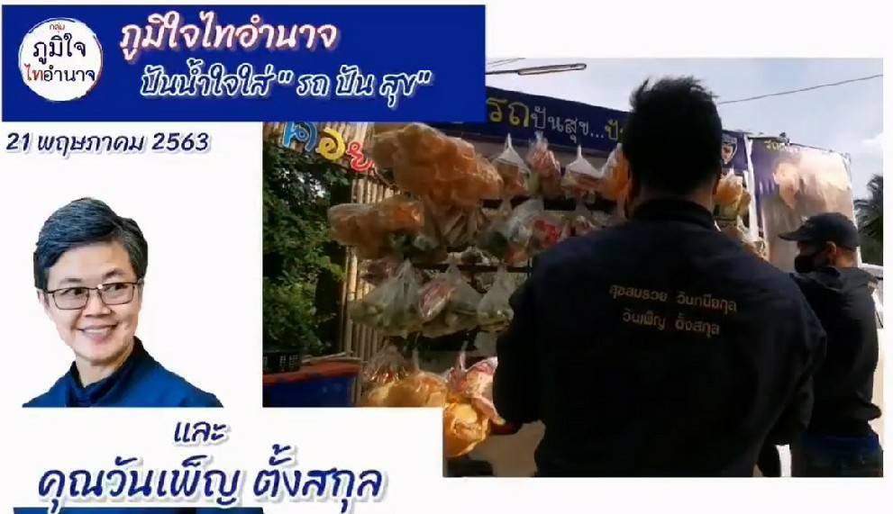 วันที่ 21 พฤษภาคม 2563 "กลุ่มภูมิใจไทอำนาจ" โดย นางสุขสมรวย วันทนียกุล เลขานุการรัฐมนตรีว่าการกระทรวงคมนาคม และ นางสาววันเพ็ญ ตั้งสกุล ได้ส่งความสุขให้ประชาชนชาวอำนาจเจริญ ด้วยการแบ่งปันอาหารแห้ง ผักสด ผลไม้ และอาหารปรุงสำเร็จต่าง ๆ เช่น แกงขี้เหล็ก ก๋วยจั๊บ สำตำรสแซ่บ แจ่วบอง น้ำเต้าหู้ ซึ่งชาวบ้านได้นำถุงผ้า หรือภาชนะอื่น เช่นหม้อ ปิ่นโต ตะกร้า มาใส่สิ่งของ และอาหาร