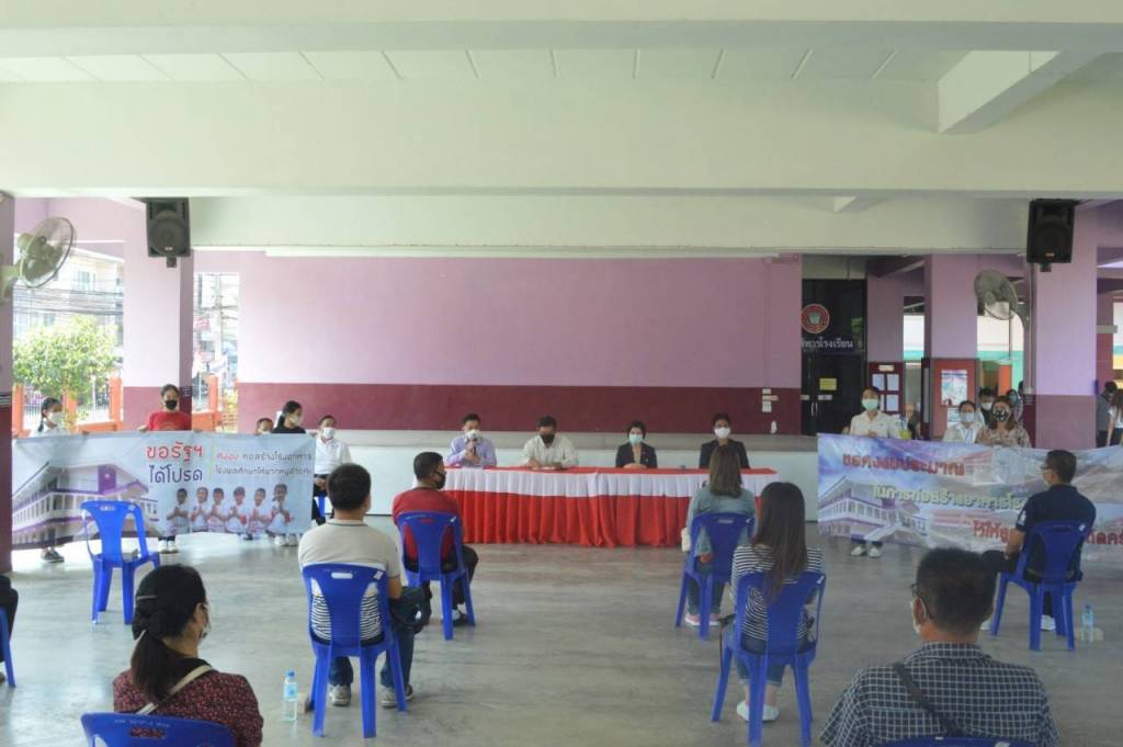ปัญหาต่อมาคือในช่วงนี้ใกล้เปิดเทอมแล้ว แต่ทางโรงเรียนไม่มีโรงอาหารให้เด็กนักเรียน และอาคารโรงอาหารหลังใหม่จะเป็นอาคารอเนกประสงค์แบบ 2 ชั้น ชั้นล่างเป็นโรงอาหาร ชั้นบนเป็นที่เรียนพลศึกษา เพื่อให้เป็นไปตามการเรียนการสอนของโรงเรียน