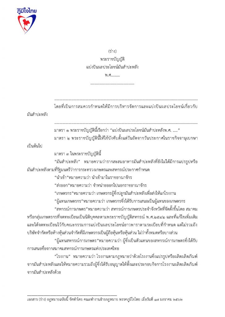ร่วมลงชื่อ … เสนอร่างแก้ไขกำไรแบ่งปัน..มันสำปะหลัง