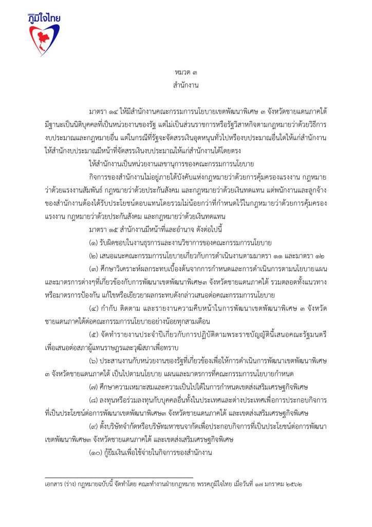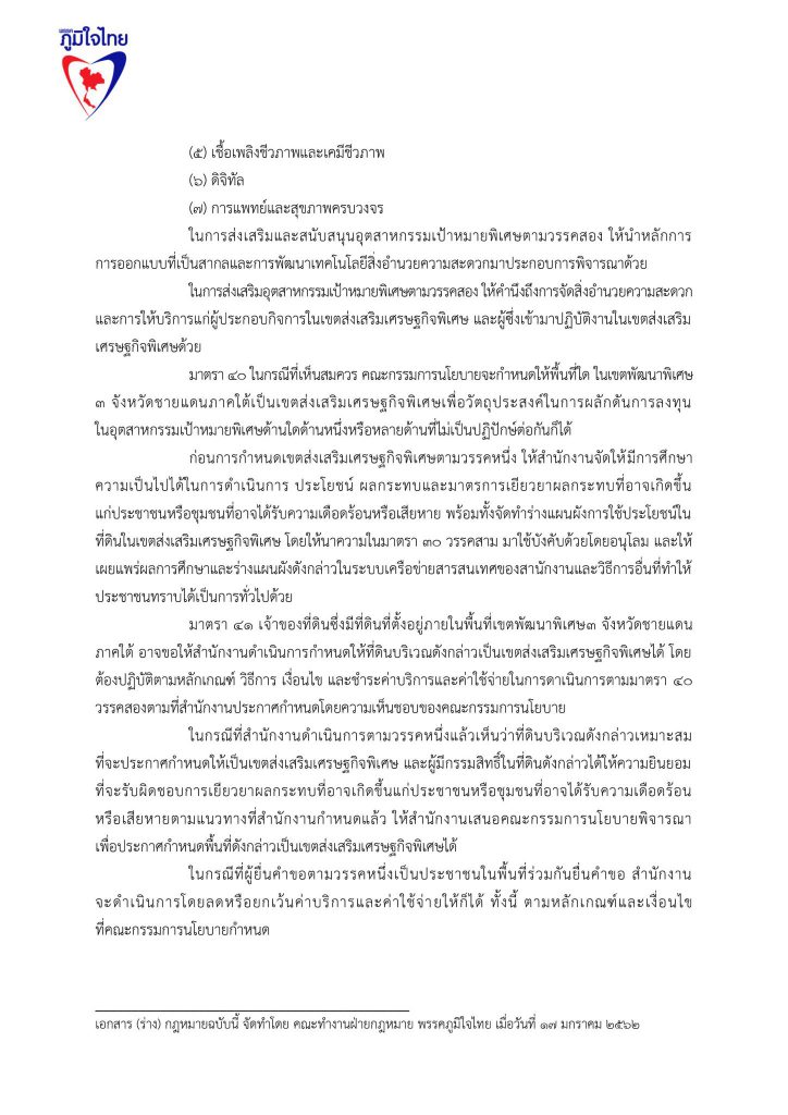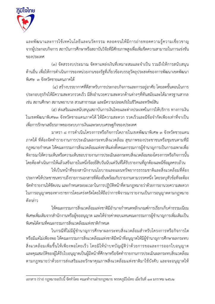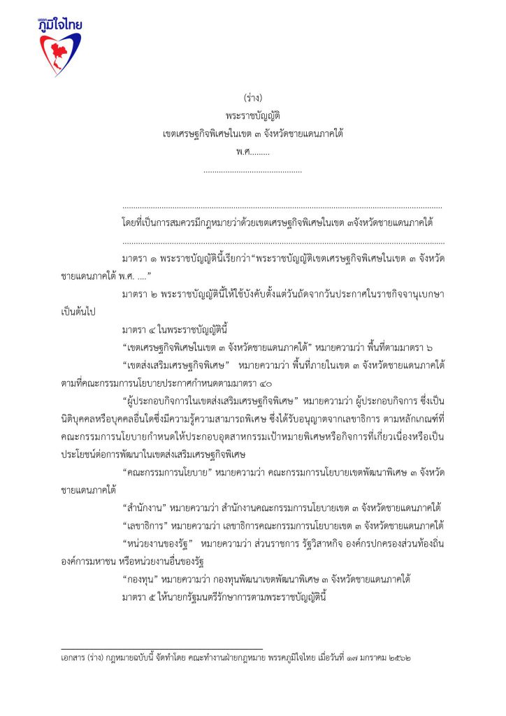 17 มกราคม 2562 เวลา 19:21ร่วมลงชื่อ … ร่างแก้ไขกฎหมายเขตเศรษฐกิจพิเศษ 3จังหวัดชายแดนภาคใต้พรรคภูมิใจไทย ลดอำนาจรัฐ .. ออกกฎหมาย เขตเศรษฐกิจพิเศษ สามจังหวัดชายแดนภาคใต้ เปลี่ยนเสียงระเบิด เป็นเสียงเครื่องจักร เปลี่ยนงบลับเป็นงบลงทุน สร้างงาน สร้างรายได้ ..เพื่อปากท้องประชาชน นำ พระราชบัญญัติเขตพัฒนาเศรษฐกิจพิเศษภาคตะวันออก ไปใช้ในพื้นที่ 3 จังหวัดชายแดนภาคใต้ โดยยกร่างกฎหมาย พระราชบัญญัติเขตเศรษฐกิจพิเศษใน3จังหวัดชายแดนภาคใต้ โดยมีหลักคิดว่า เมื่อแก้ไขปัญหาปากท้องประชาชน ให้มีความเป็นอยู่ที่ดีขึ้นแล้ว ปัญหาความไม่สงบในพื้นที่จะลดน้อยลงไป หากมีการแก้ไขปัญหาด้วยมาตรการจูงใจในหลาย ๆ ด้าน เพื่อดึงดูดนักลงทุนเข้าสู่พื้นที่ ประชาชนจะมีชีวิตความเป็นอยู่ที่ดีขึ้น พรรคภูมิใจไทย เสนอร่างพ.ร.บ.เขตเศรษฐกิจพิเศษใน 3 จังหวัดชายแดนภาคใต้ ด้วยการร่วมลงชื่อเสนอกฎหมาย เพื่อแก้ไขปัญหาความไม่สงบสุขในพื้นที่ 3 จังหวัดชายแดนภาคใต้ สร้างความกินดี อยู่ดี ให้กับประชาชนในพื้นที่ได้ จึงน่าจะเป็นทางออกที่สำคัญสำหรับการแก้ไขปัญหา แชร์บทความนี้: