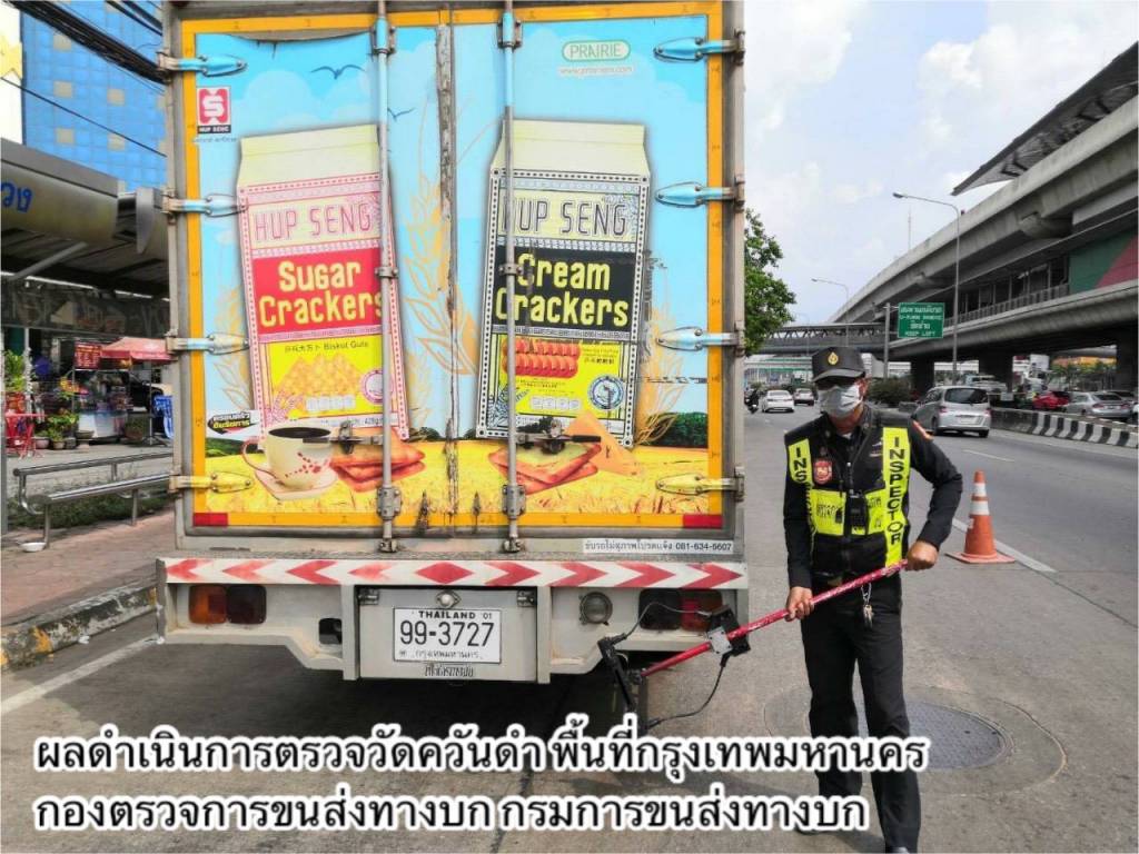 ในเขตกรุงเทพมหานคร ดำเนินการตรวจในพื้นที่ที่มีค่าฝุ่นละอองขนาดเล็ก PM2.5 สูง ตรวจวัดค่าควันดำรถจำนวน 385 คัน (รถบรรทุก 275 คัน,รถโดยสารประจำทาง 110 คัน,รถโดยสารไม่ประจำทาง - คัน) พบรถที่มีค่าควันดำเกินเกณฑ์มาตรฐานที่ราชการกำหนด จำนวน 1 คัน