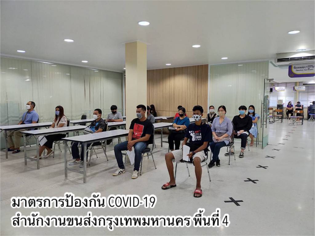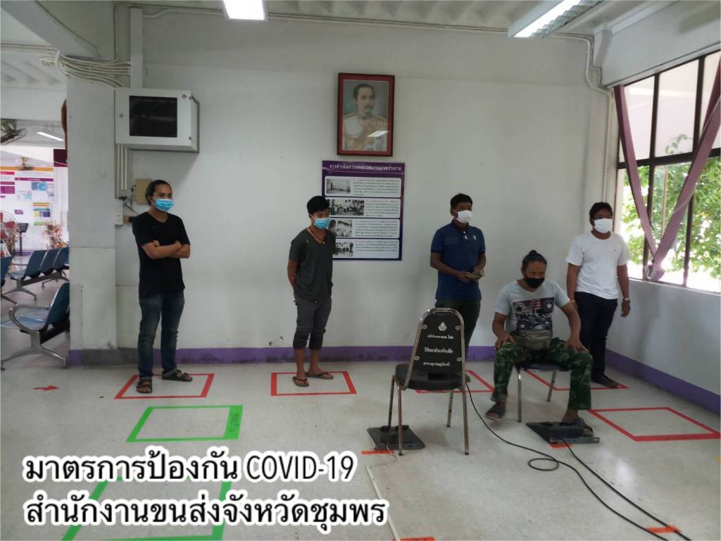 •ดำเนินการตามมาตรการ Social Distancing โดยเว้นระยะห่างของที่นั่งพักคอยของประชาชน กำหนดระยะห่างของตำแหน่งการยืนคอยรับบริการที่จุดประชาสัมพันธ์