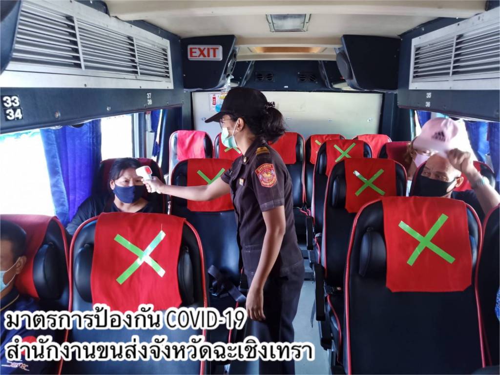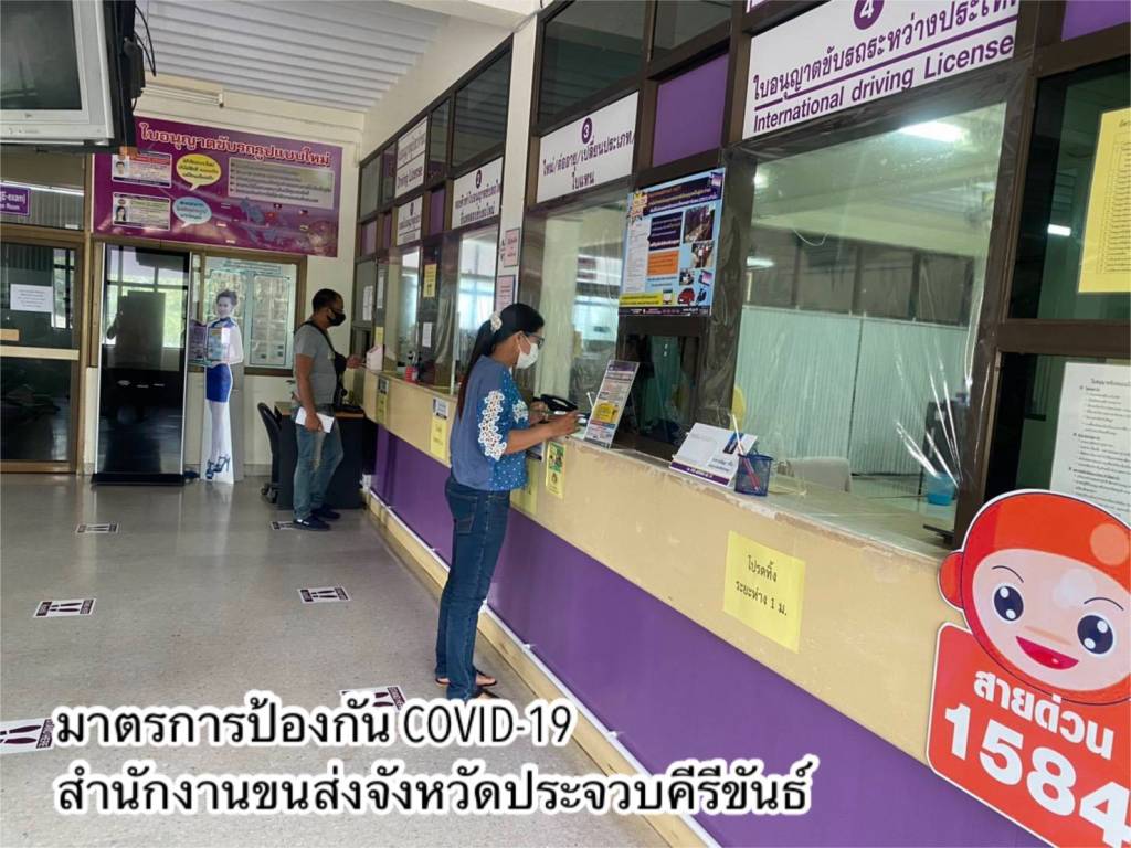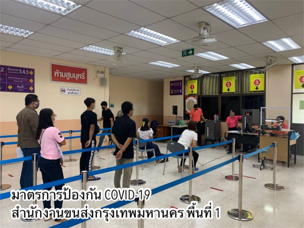 •ด้านอาคารสถานที่และสิ่งอำนวยความสะดวกในหน่วยงาน ทำความสะอาดฆ่าเชื้อโรคพื้นที่ให้บริการภายในสำนักงานขนส่งทุกวัน โดยเฉพาะจุดที่มีการสัมผัสบ่อยครั้ง เช่น เคาน์เตอร์บริการ ที่จับประตู ที่จับราวบันได ปุ่มกดลิฟต์ เป็นต้น และจัดให้มีสบู่ในห้องน้ำ เจลแอลกอฮอล์ล้างมือที่เคาน์เตอร์ให้บริการและจุดประชาสัมพันธ์