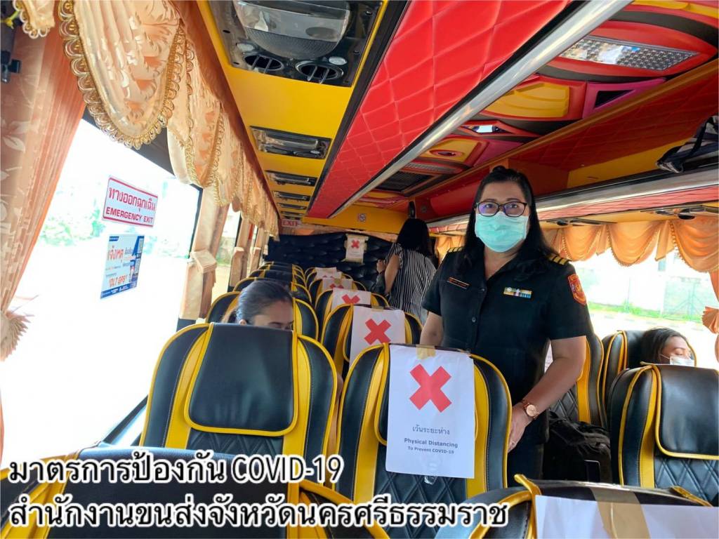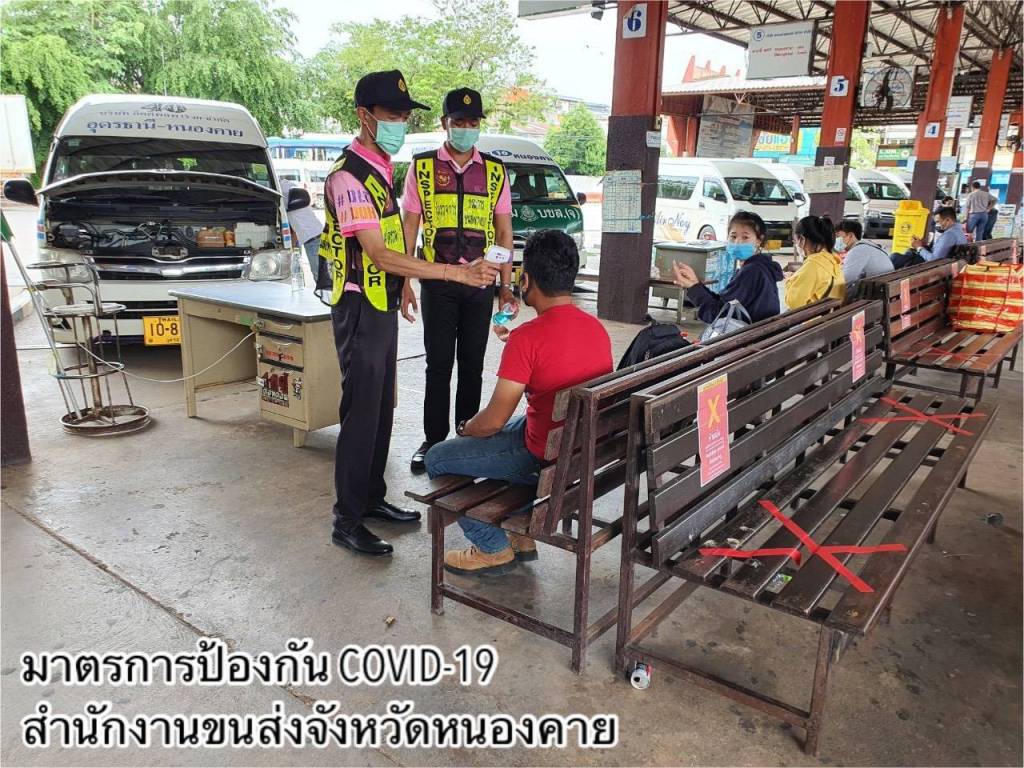 •ด้านอาคารสถานที่และสิ่งอำนวยความสะดวกในหน่วยงาน ทำความสะอาดฆ่าเชื้อโรคพื้นที่ให้บริการภายในสำนักงานขนส่งทุกวัน โดยเฉพาะจุดที่มีการสัมผัสบ่อยครั้ง เช่น เคาน์เตอร์บริการ ที่จับประตู ที่จับราวบันได ปุ่มกดลิฟต์ เป็นต้น และจัดให้มีสบู่ในห้องน้ำ เจลแอลกอฮอล์ล้างมือที่เคาน์เตอร์ให้บริการและจุดประชาสัมพันธ์