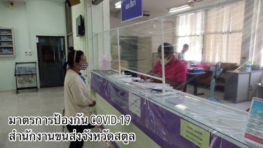 •ดำเนินการตามมาตรการ Social Distancing โดยเว้นระยะห่างของที่นั่งพักคอยของประชาชน กำหนดระยะห่างของตำแหน่งการยืนคอยรับบริการ ติดตั้ง Table Shield กั้นระหว่างผู้มาติดต่อกับเจ้าหน้าที่