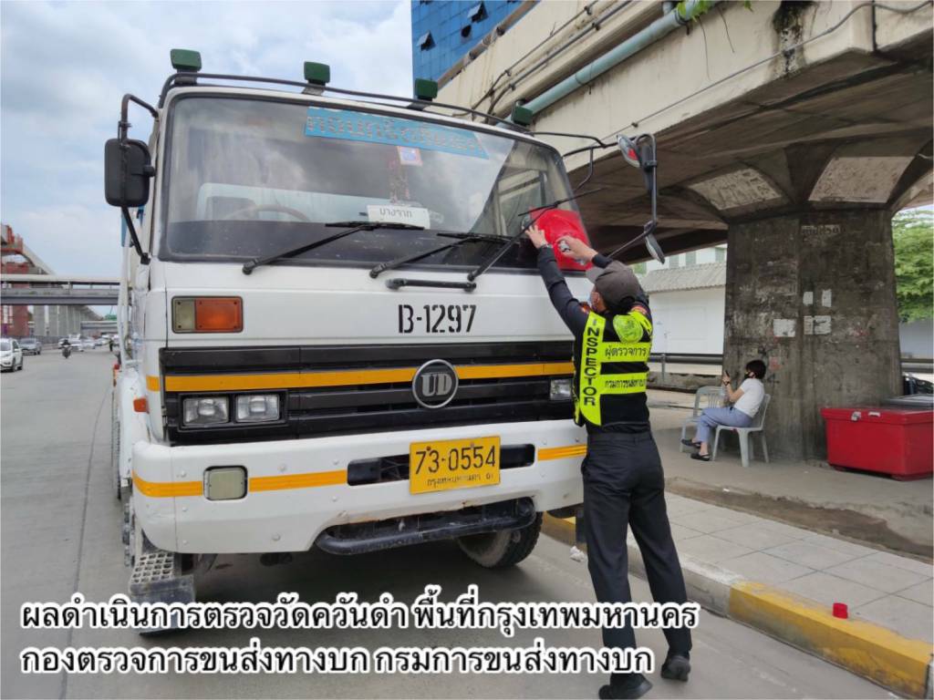 ในส่วนของสำนักขนส่งจังหวัด 15 จังหวัด ที่เป็นเส้นทางเข้าสู่ กรุงเทพมหานคร ตรวจวัดค่าควันดำรถ จำนวน 598 คัน (รถบรรทุก 320 คัน,รถโดยสารประจำทาง 136 คัน,รถโดยสารไม่ประจำทาง 142 คัน) พบรถที่มีค่าควันดำเกินเกณฑ์มาตรฐานที่ราชการกำหนด จำนวน 2 คัน และออกใบเตือน จำนวน 41 คัน