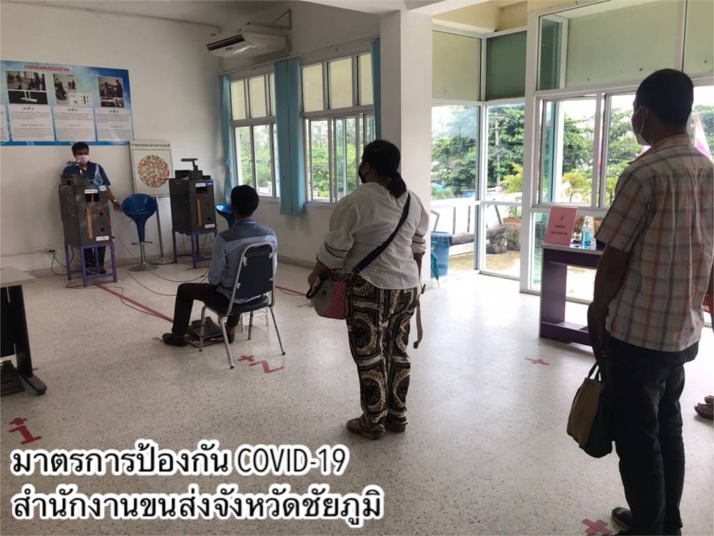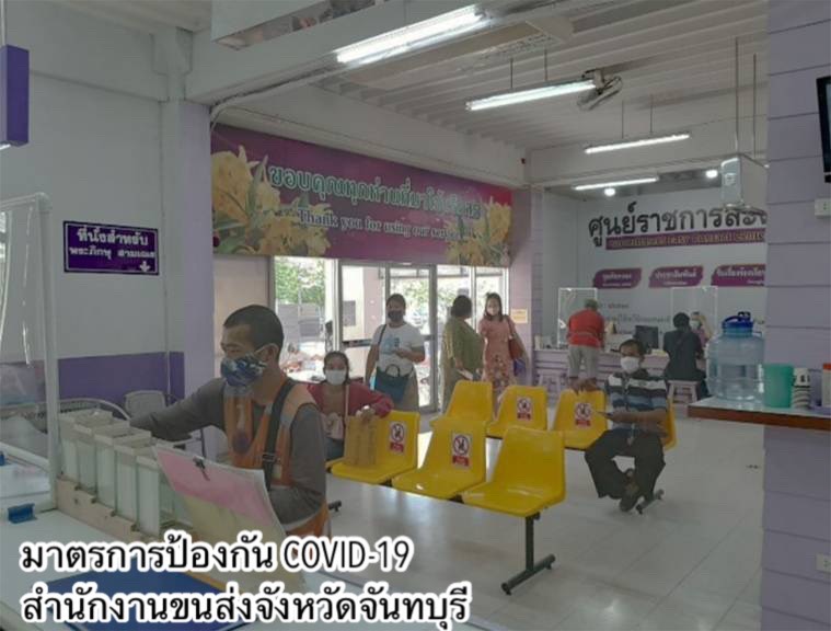 •ด้านอาคารสถานที่และสิ่งอำนวยความสะดวกในหน่วยงาน ทำความสะอาดฆ่าเชื้อโรคพื้นที่ให้บริการภายในสำนักงานขนส่งทุกวัน โดยเฉพาะจุดที่มีการสัมผัสบ่อยครั้ง เช่น เคาน์เตอร์บริการ ที่จับประตู ที่จับราวบันได ปุ่มกดลิฟต์ เป็นต้น และจัดให้มีสบู่ในห้องน้ำ เจลแอลกอฮอล์ล้างมือที่เคาน์เตอร์ให้บริการและจุดประชาสัมพันธ์
