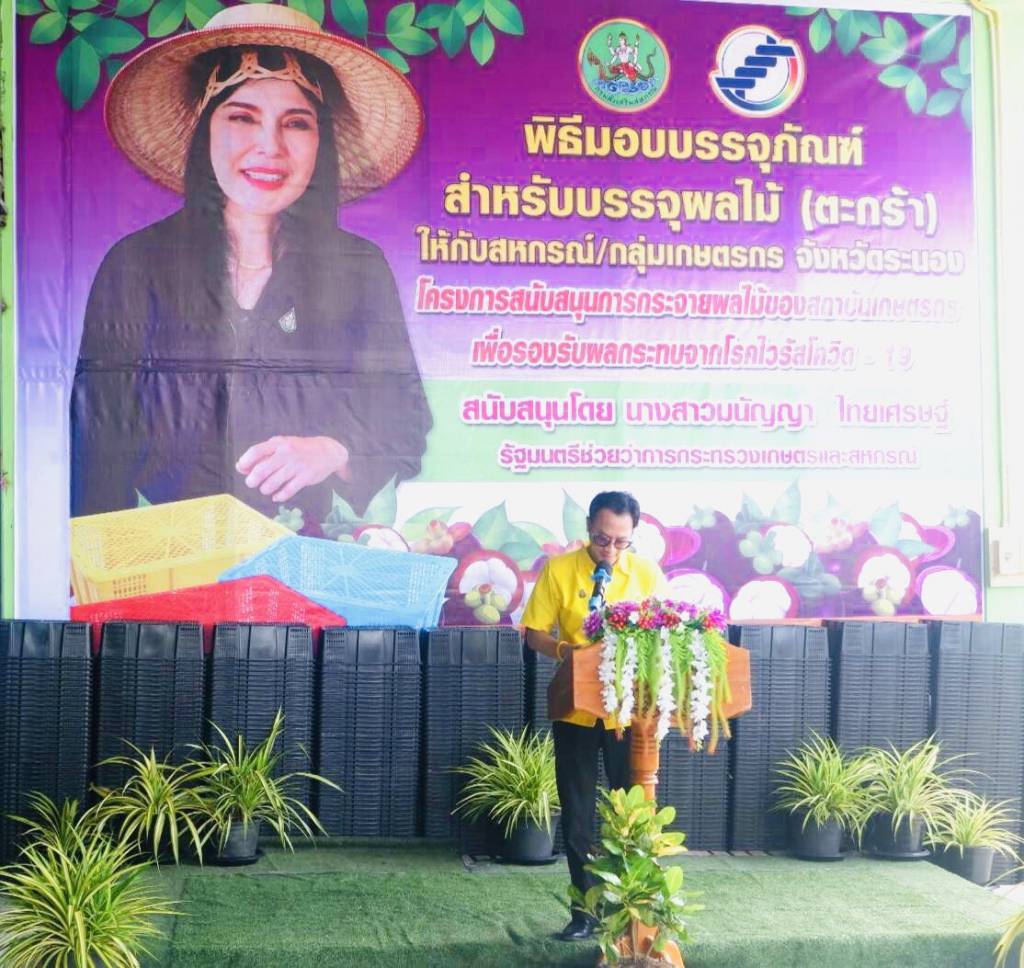 19 มิถุนายน 2563 เวลา 19:39"ส.ส.คงกฤษ" เป็นผู้แทน "รมช.มนัญญา" มอบบรรจุภัณฑ์สำหรับบรรจุผลไม้ (ตะกร้า) ให้กับกลุ่มเกษตรกรเข้าร่วมโครงการ สนับสนุนการกระจายผลไม้ของสถาบันการเกษตร เพื่อรองรับผลกระทบจากโรคโควิด-19 ที่ จ.ระนองวันที่ 19 มิถุนายน 2563 นายคงกฤษ ฉัตรมาลีรัตน์ สมาชิกสภาผู้แทนราษฎรจังหวัดระนอง เป็นผู้แทนนางสาวมนัญญา ไทยเศรษฐ์ รัฐมนตรีช่วยว่าการกระทรวงเกษตรและสหกรณ์ ในการเป็นประธานในพิธีมอบบรรจุภัณฑ์สำหรับบรรจุผลไม้ (ตะกร้า) เพื่อใช้ในการรวบรวม และกระจายผลไม้สู่ผู้บริโภค ตามโครงการสนับสนุนการกระจายผลไม้ของสถาบันการเกษตร เพื่อรองรับผลกระทบจากโรคไวรัสโควิด-19 ซึ่งมีสหกรณ์ และกลุ่มเกษตรกร เข้าร่วมโครงการจำนวน 4 แห่ง เป้าหมายคือกระจายผลไม้มังคุด จำนวน 640 ตัน โดยสนับสนุนเป็นค่าบริหารจัดการ และบรรจุภัณฑ์สำหรับบรรจุผลไม้ (ตะกร้า) จำนวน 9,000 ใบ รวมเป็นเงินทั้งสิ้น 1,212,000 บาท โดยมี นายยุทธนา แก้วน้อย สหกรณ์จังหวัดระนอง หัวหน้าส่วนราชการ ผู้นำท้องที่ ผู้นำท้องถิ่น พี่น้องเกษตรกร และภาคประชาชนกว่า 200 คนเข้าร่วมในพิธีฯ และได้รับความร่วมมือเป็นอย่างดีจากพี่น้องอสม. ช่วยดำเนินการคัดกรอง ตรวจวัดไข้ก่อนเข้าร่วมงานอีกด้วย สำหรับโครงการนี้พี่น้องเกษตรกรต่างดีใจ และมีกำลังใจในการขับเคลื่อนงาน และขับเคลื่อนกลุ่มสหกรณ์เกษตรต่อไป ทั้งนี้ นายคงกฤษ กล่าวว่า " ในนามตัวแทนพี่น้องสมาชิกเกษตรกรจังหวัดระนอง ต้องขอขอบพระคุณท่านมนัญญา ไทยเศรษฐ์ รัฐมนตรีช่วยว่าการกระทรวงเกษตรและสหกรณ์ ที่ได้ให้ความกรุณาและให้การสนับสนุนในครั้งนี้" แชร์บทความนี้: