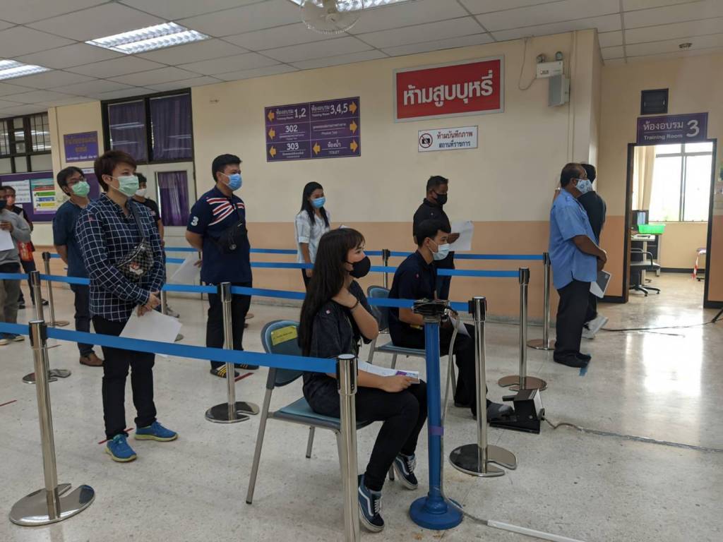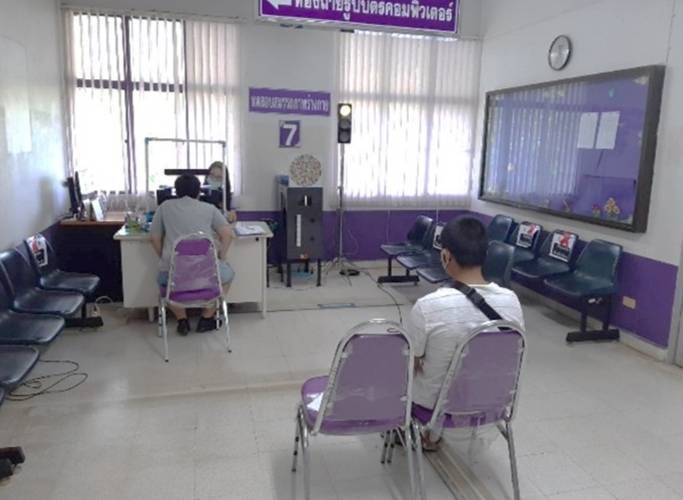 •ดำเนินการตามมาตรการ Social Distancing โดยเว้นระยะห่างของที่นั่งพักคอยของประชาชน กำหนดระยะห่างของตำแหน่งการยืนคอยรับบริการ ติดตั้ง Table Shield กั้นระหว่างผู้มาติดต่อกับเจ้าหน้าที่