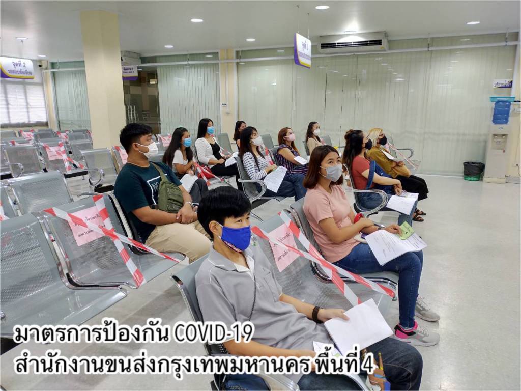 •ดำเนินการตามมาตรการ Social Distancing โดยเว้นระยะห่างของที่นั่งพักคอยของประชาชน กำหนดระยะห่างของตำแหน่งการยืนคอยรับบริการ ติดตั้ง Table Shield กั้นระหว่างผู้มาติดต่อกับเจ้าหน้าที่